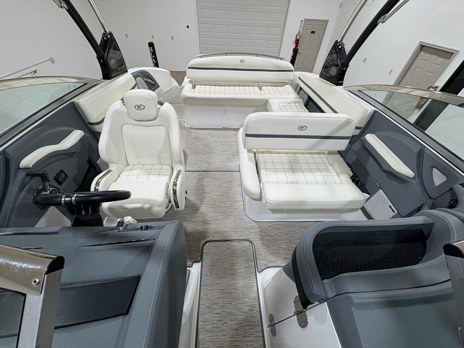 The 2021 Cobalt R5 Bowrider is packed with features designed to elevate your boating experience. Its spacious 25.67-foot layout provides generous seating and lounging areas, making it ideal for entertaining guests or relaxing with family. The ergonomic helm station offers intuitive controls and excellent visibility, ensuring a safe and enjoyable journey every time you set out.The open bow configuration is a hallmark of Bowrider boats, offering easy access to the water and a versatile space for sunbathing, socializing, or simply enjoying the view. The cockpit is designed for comfort, with plush seating and ample legroom. Storage compartments are strategically placed throughout the boat, allowing you to stow gear, snacks, and personal items securely and conveniently.