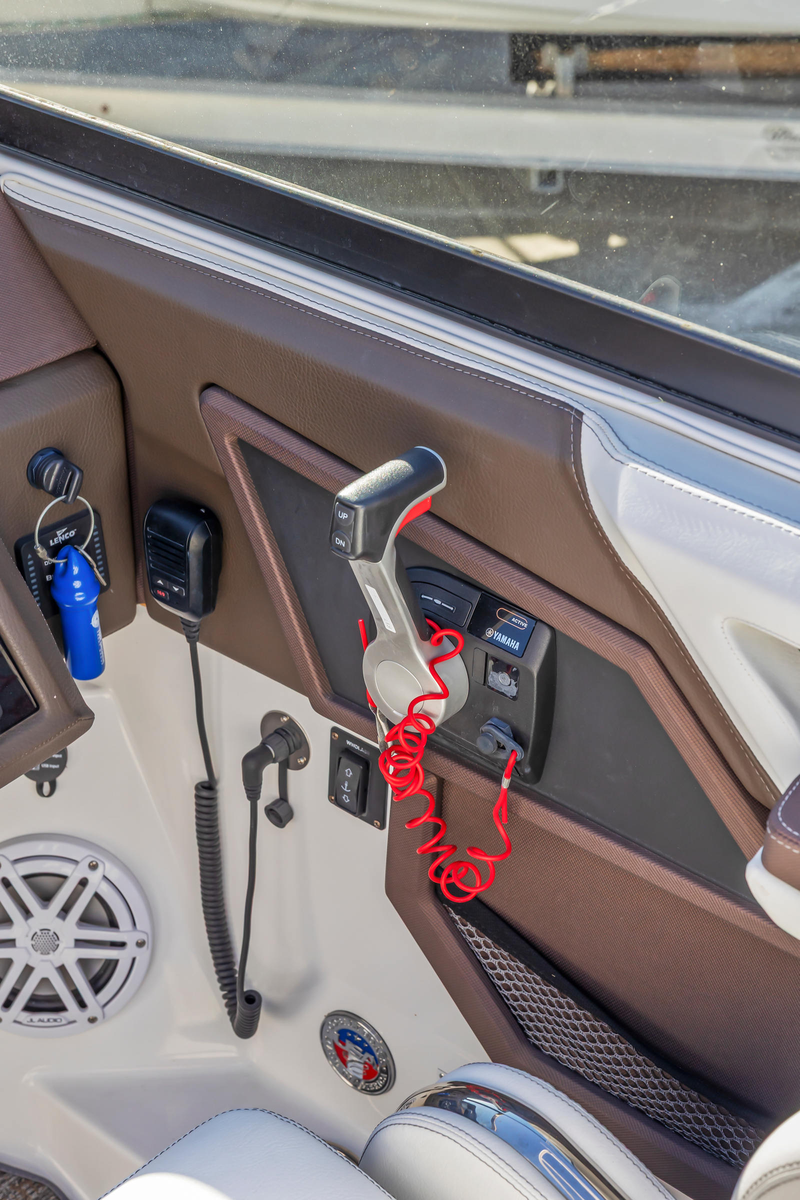 Well-equipped for entertaining and cruising, this boat features dual in-dash Garmin multifunction displays, JL Audio sound system, electric windlass anchor, trim tabs, and an aluminum arch with integrated Bimini top for added comfort and shade. Cobalt’s signature interior layout includes plush wraparound seating, a convertible aft sunpad, and a spacious, enclosed head compartment, all finished with top-tier materials and stitching.