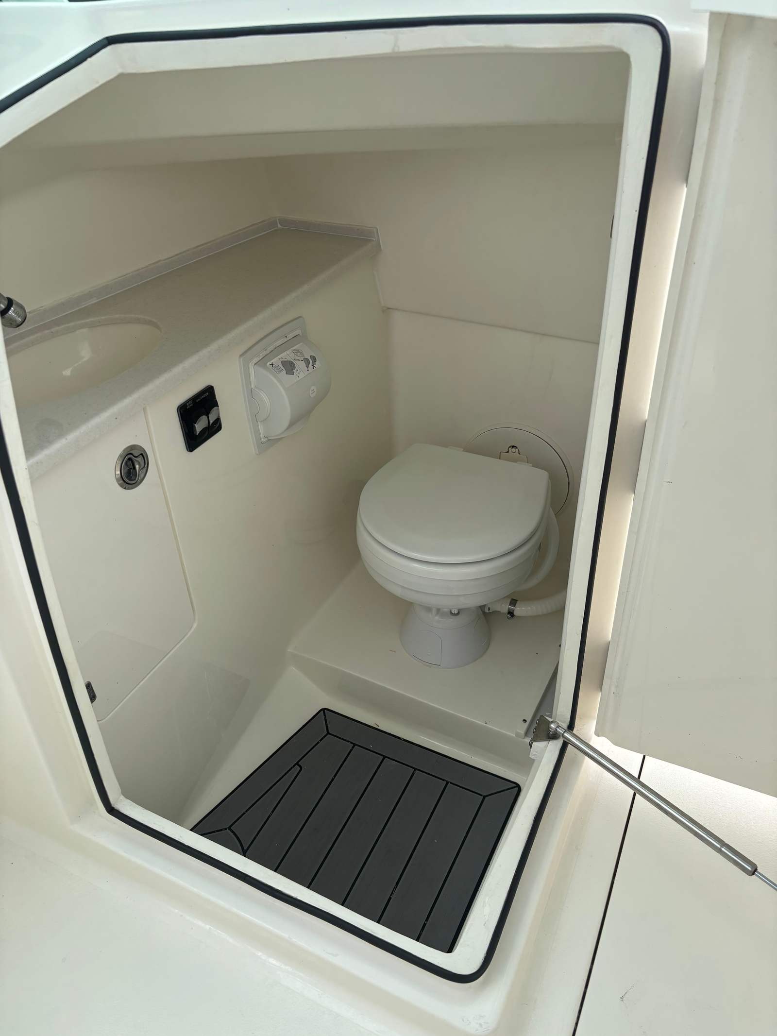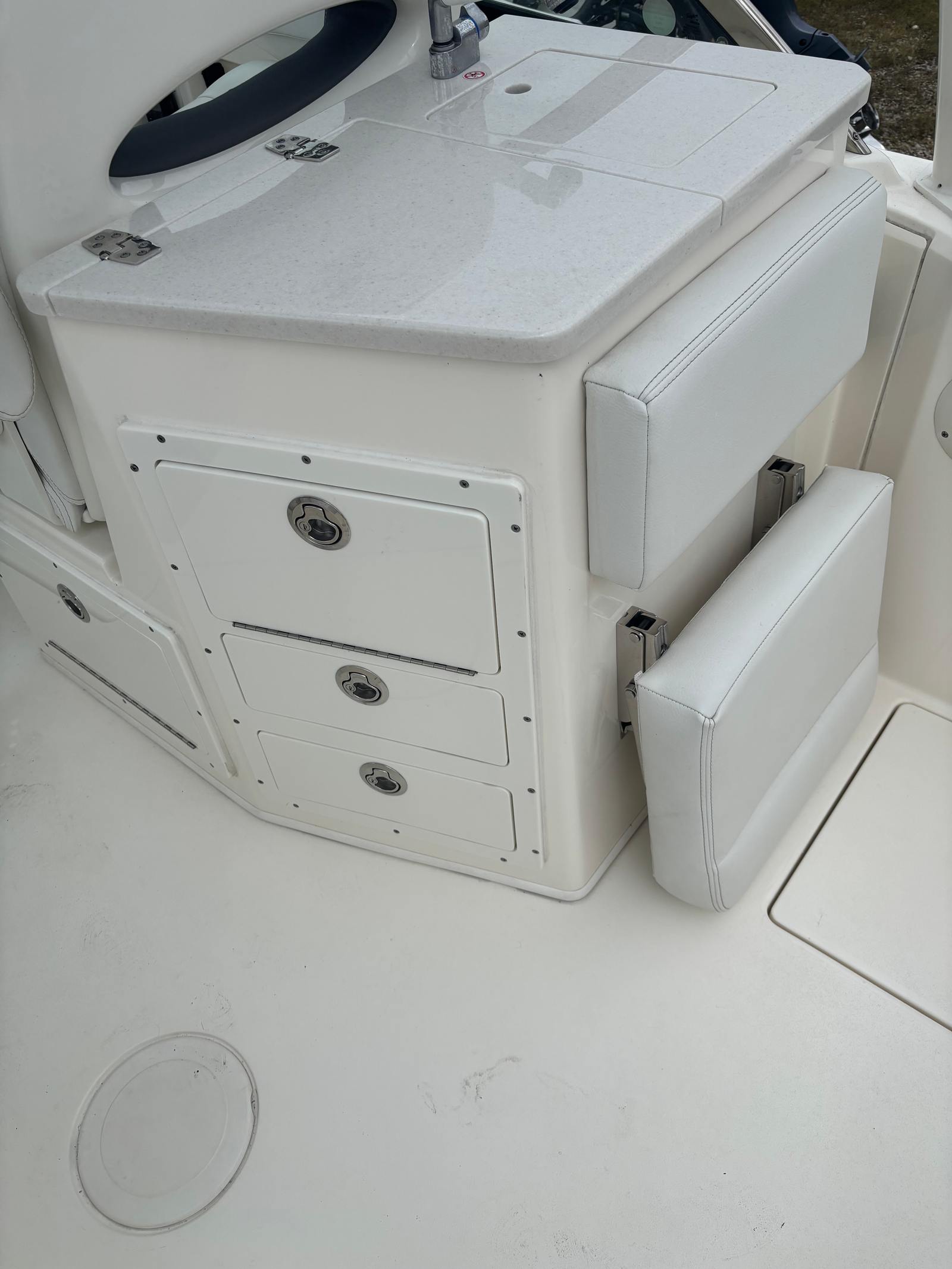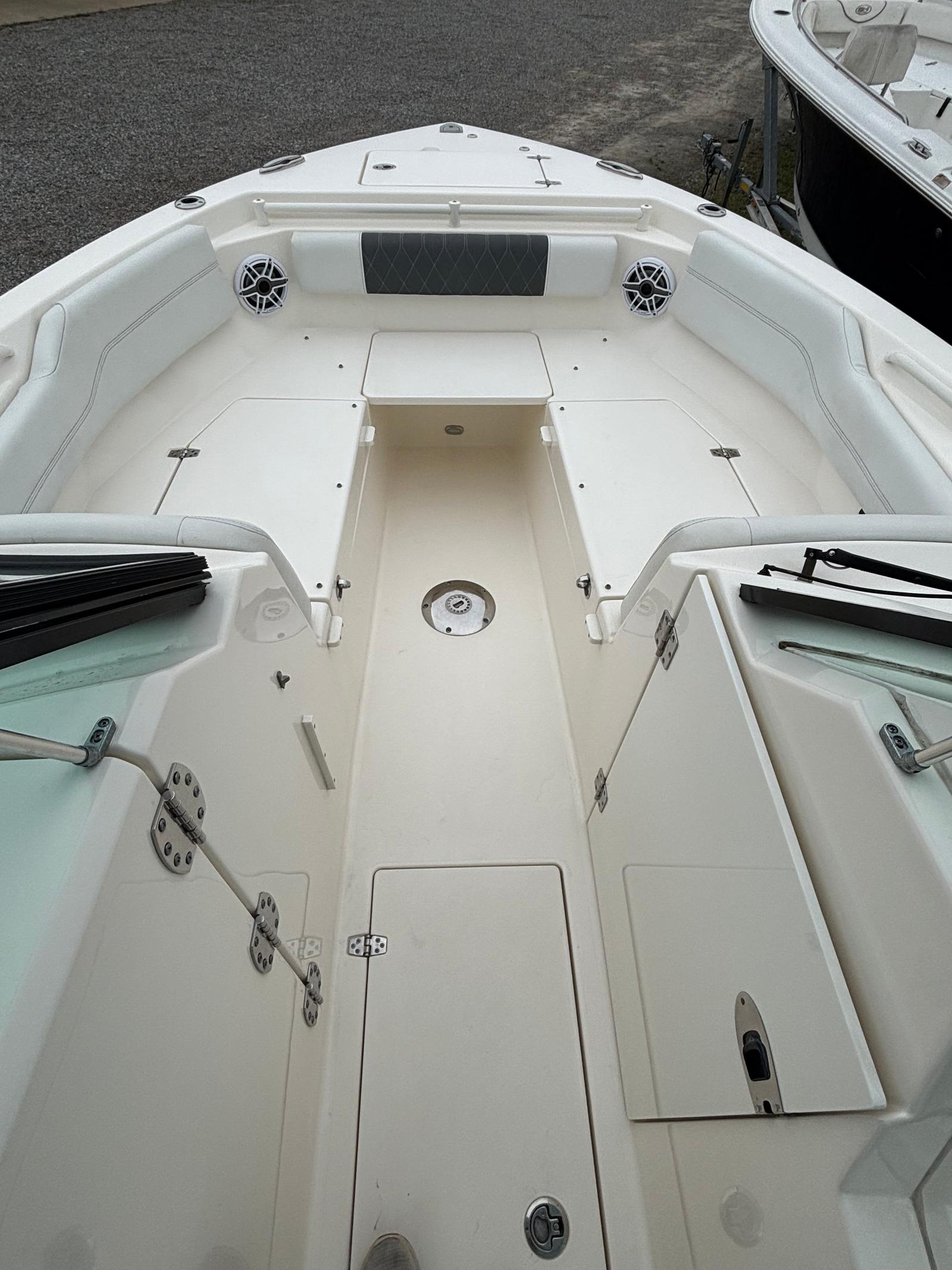 At the heart of this Cobia boat for sale is a single, robust engine delivering an impressive 300 horsepower. This setup provides plenty of power for cruising, watersports, or getting to your favorite fishing spot quickly and efficiently. With only 99 engine hours, the motor is in great shape and ready for many more seasons of reliable performance. The Cobia 240 DC’s hull design ensures a smooth, stable ride even in choppy conditions, making it a dependable choice for both novice and experienced boaters.