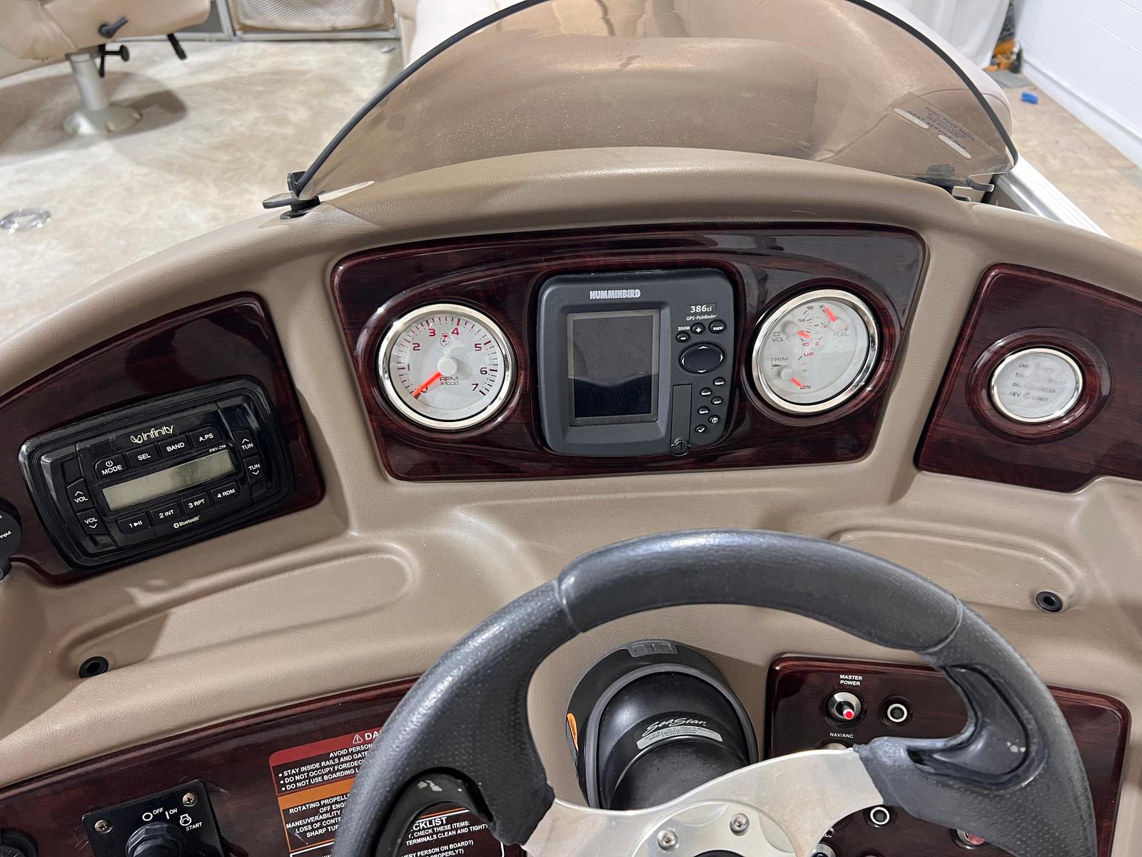This Crest pontoon boat for sale is packed with features designed to elevate your boating experience. The SNAP-ON COVER offers protection from the elements, keeping your boat in top condition when not in use. The BIMINI TOP provides shade and comfort on sunny days, allowing you to relax and enjoy the scenery without worrying about harsh sun exposure. For water sports enthusiasts, the STAINLESS SKI TOW BAR is a standout feature, making it easy to tow skiers, wakeboarders, or inflatable tubes.Dual batteries with a switch ensure reliable power management, so you can enjoy extended outings without concern. Docking lights and courtesy lights enhance safety and convenience, making evening cruises and docking maneuvers a breeze. The stainless steel telescoping swim ladder offers easy access to and from the water, perfect for swimming and water play. The onboard stereo with speakers sets the mood for fun and relaxation, providing high-quality sound for your favorite tunes as you cruise.