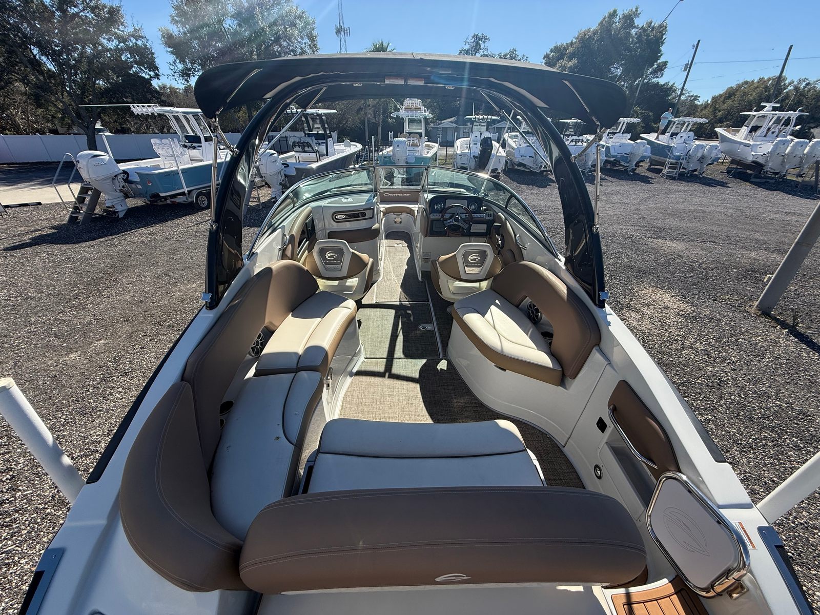 In summary, the 2021 Crownline E275XS is a standout pontoon boat for sale that combines luxury, performance, and versatility in one impressive package. With its 27-foot length, powerful 350-horsepower engine, and low engine hours, this used Crownline boat for sale offers exceptional value and reliability. The spacious layout, high-quality construction, and thoughtful features make it an ideal choice for anyone looking to elevate their boating adventures. Whether you are seeking fun-filled days with family, exciting watersports, or relaxing cruises, the E275XS delivers on all fronts. Don’t miss the opportunity to own this remarkable pontoon boat—contact your local dealer today to learn more and schedule a viewing.