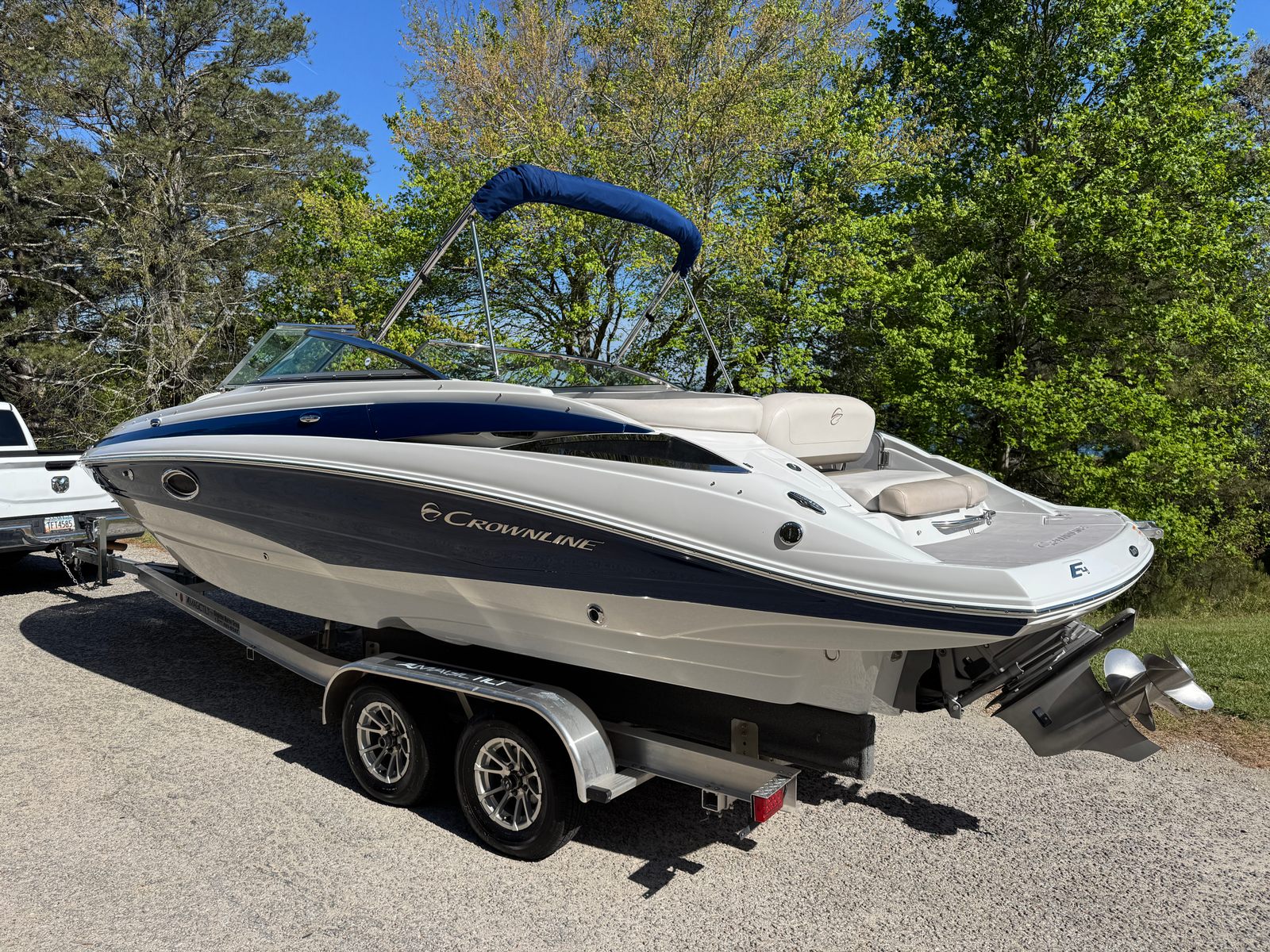 This bowrider boat for sale is as practical as it is enjoyable. The generous storage options make it easy to bring along everything you need for a day on the water, from water toys and fishing gear to snacks and beverages. The efficient engine helps you make the most of your time on the water, while the manageable size of the 25.25-foot hull ensures easy docking and maneuverability.Whether you are launching from a busy marina or anchoring in a secluded cove, the Crownline E4 offers the versatility and convenience that today’s boaters demand. Its user-friendly design makes it accessible for boaters of all experience levels, while the quality construction ensures years of reliable enjoyment.