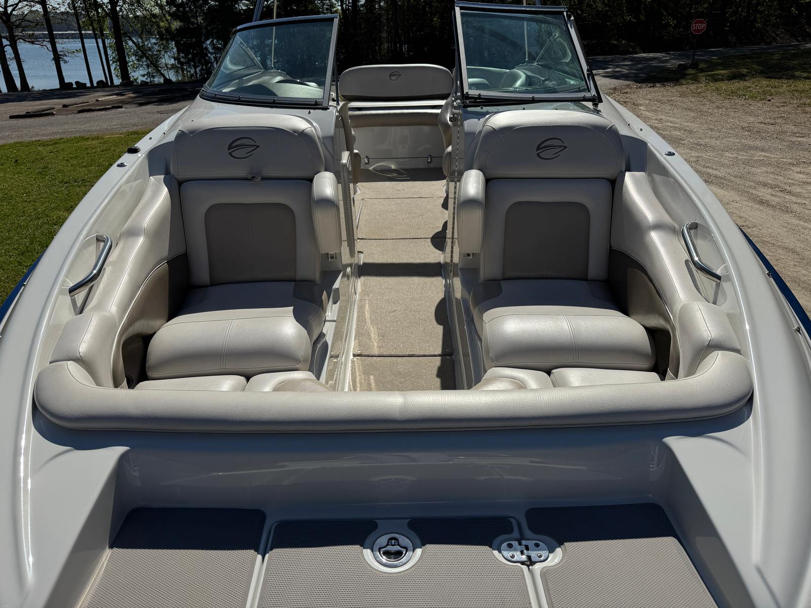 The 2013 Crownline E4 is a 25.25-foot bowrider that stands out for its sleek design and versatile functionality. This model is renowned for its spacious cockpit and bow seating, making it an ideal choice for those who enjoy entertaining guests or relaxing under the sun. As a used bowrider boat for sale, the E4 offers a unique opportunity to own a premium vessel at a fraction of the cost of a new model, without compromising on quality or performance.With its modern lines and attention to detail, the Crownline E4 is a testament to the brand’s commitment to craftsmanship and innovation. The 25.25-foot length provides ample space for passengers, while the thoughtful layout ensures everyone on board can enjoy the ride in comfort and style.