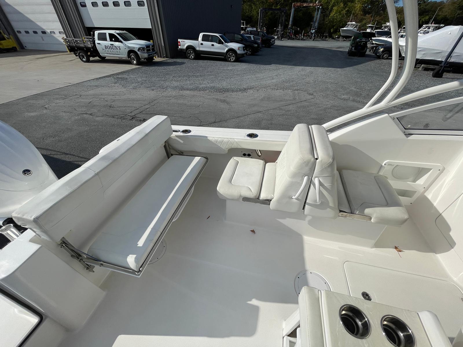 The Edgewater 248 CX is packed with features that enhance both functionality and enjoyment on the water. Its dual console layout offers exceptional versatility, providing comfortable seating and protection from the elements for both captain and passengers. The spacious cockpit and bow seating areas are perfect for socializing, sunbathing, or enjoying a picnic on the water. The thoughtful design ensures that every inch of the boat is utilized for maximum comfort and convenience.This dual console boat for sale is built with Edgewater’s signature attention to detail, featuring high-quality materials and craftsmanship throughout. The ergonomic helm station provides excellent visibility and easy access to controls, making navigation a breeze. Storage compartments are strategically placed to keep gear organized and out of the way, while still being easily accessible when needed.