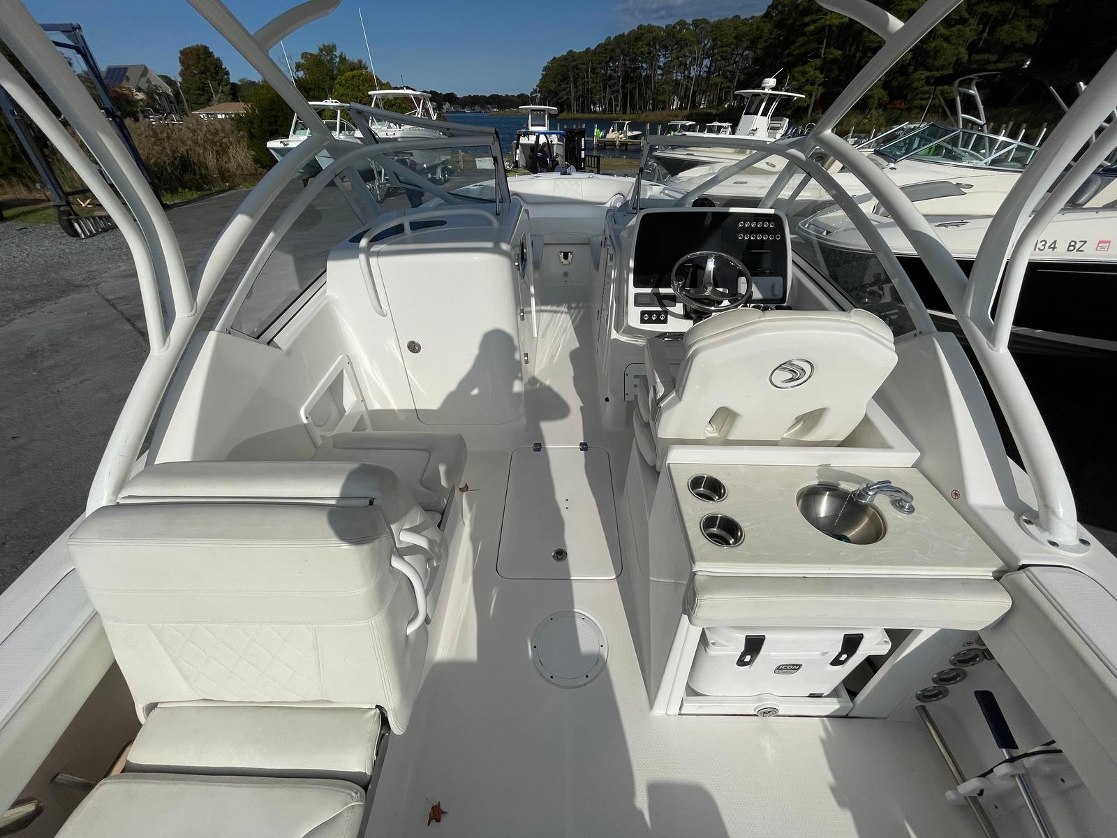 Practicality is at the heart of the Edgewater 248 CX’s design. The boat’s generous storage options make it easy to stow away gear, water toys, and personal items, keeping the deck clutter-free and organized. The efficient single-engine setup not only provides excellent fuel economy but also simplifies maintenance, making ownership more convenient and cost-effective.Docking and maneuvering are effortless thanks to the responsive handling and well-balanced hull design. Whether you’re navigating tight marinas or anchoring in your favorite cove, the Edgewater 248 CX offers confidence and control. The durable construction ensures that this boat can handle a variety of conditions, from calm lakes to coastal waters, expanding your possibilities for adventure.