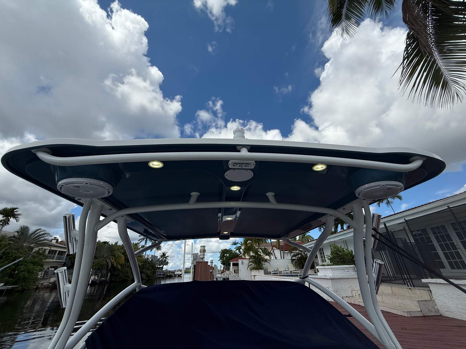• White Powder Coated hard top with Rod Holders