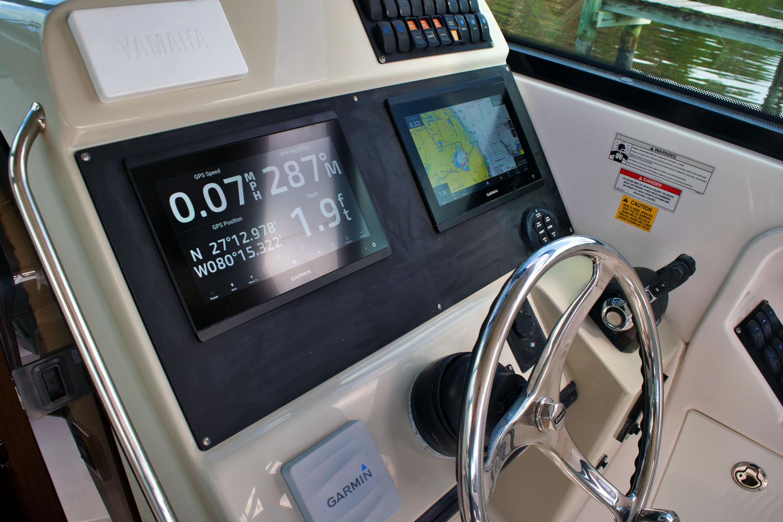 The Everglades 320 EX is loaded with features that enhance both its fishing capabilities and onboard comfort. As an offshore boat for sale, it’s designed to meet the needs of serious anglers while also catering to those who appreciate luxury and convenience. The spacious cockpit provides plenty of room for casting lines and reeling in the catch of the day, while the well-designed helm offers excellent visibility and intuitive controls for stress-free navigation. The 32-foot length ensures generous deck space, making it easy to move around and enjoy all the amenities this Everglades boat for sale has to offer.