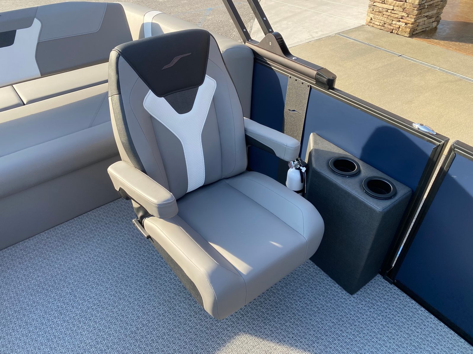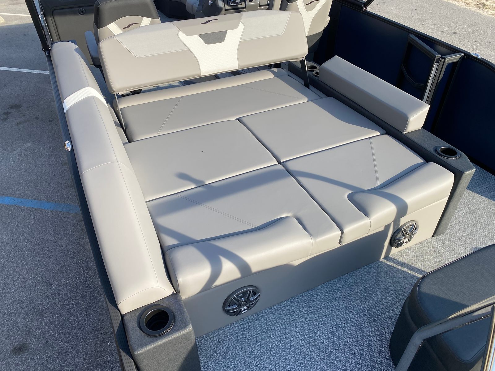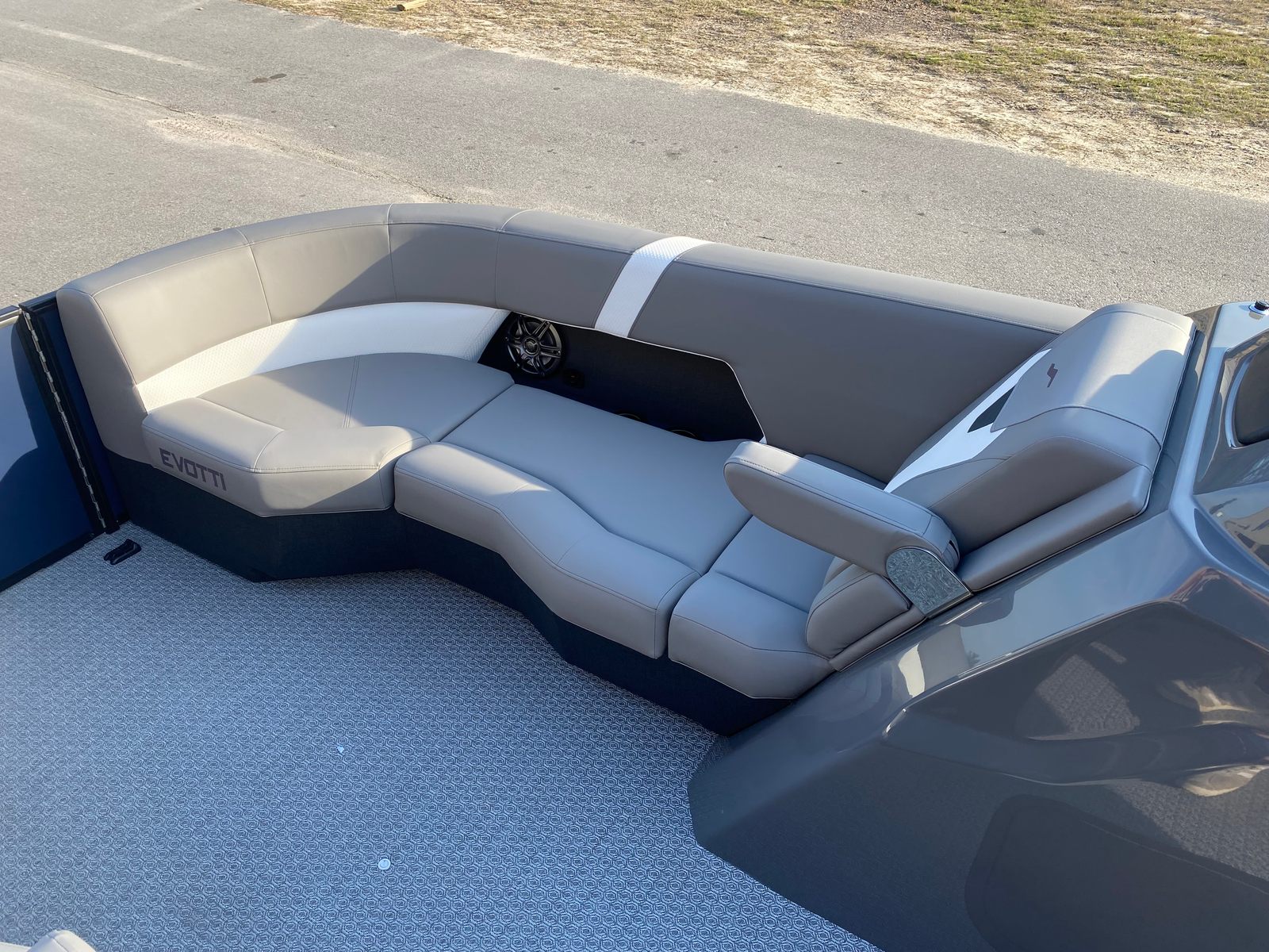 The Evotti 521 CS Pontoon boat is engineered for practicality as well as pleasure. Its 23.5-foot length provides ample storage space for gear, refreshments, and personal items, making it easy to prepare for a day on the water. The Steel Gray Evolution Flooring is not only stylish but also resistant to wear and easy to maintain, ensuring your boat stays looking great season after season.Docking and maneuvering are simplified thanks to the responsive Yamaha engine and efficient rigging. The single battery system keeps electrical components running smoothly, while the Garmin 943 with 5" gauges offers real-time information to help you navigate and monitor performance. Fuel efficiency is optimized by the Yamaha F200XD2 engine, allowing you to enjoy longer outings without frequent refueling stops.