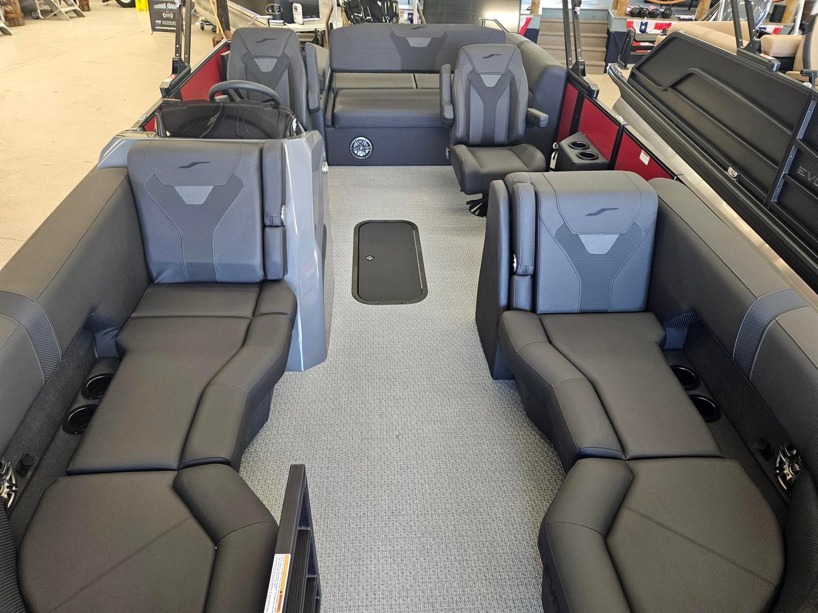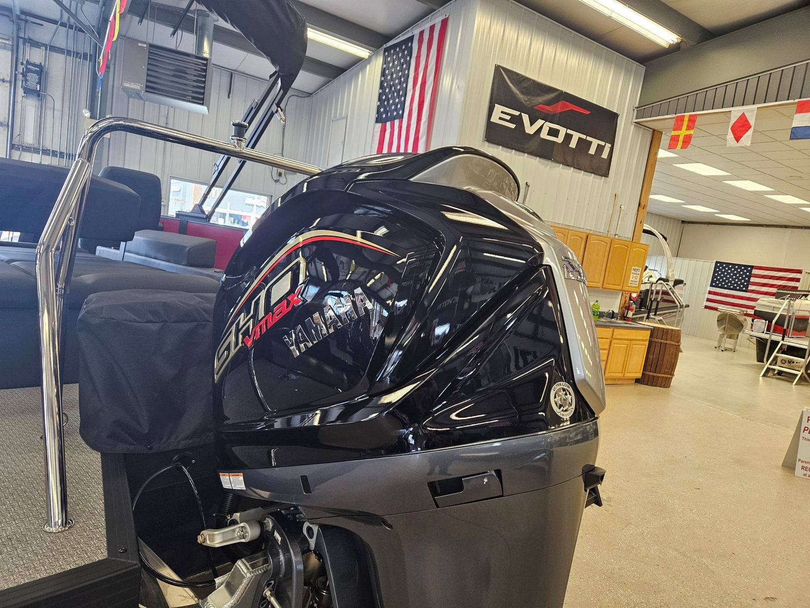 The 2026 Evotti 521 CS is more than just a pontoon boat for sale—it is your gateway to adventure, relaxation, and lasting memories. With its powerful 250-horsepower engine, advanced features like the Garmin 943, Clarion head unit and speakers, and power assist steering, this boat offers unmatched performance and enjoyment. The striking design, premium materials, and thoughtful layout ensure that every outing is comfortable, stylish, and fun.If you are searching for an Evotti boat for sale that combines innovation, luxury, and versatility, the 521 CS is the ultimate choice. Don’t miss the opportunity to own this exceptional pontoon and elevate your time on the water. Contact your local dealer today to learn more about the Evotti 521 CS and start your next adventure!