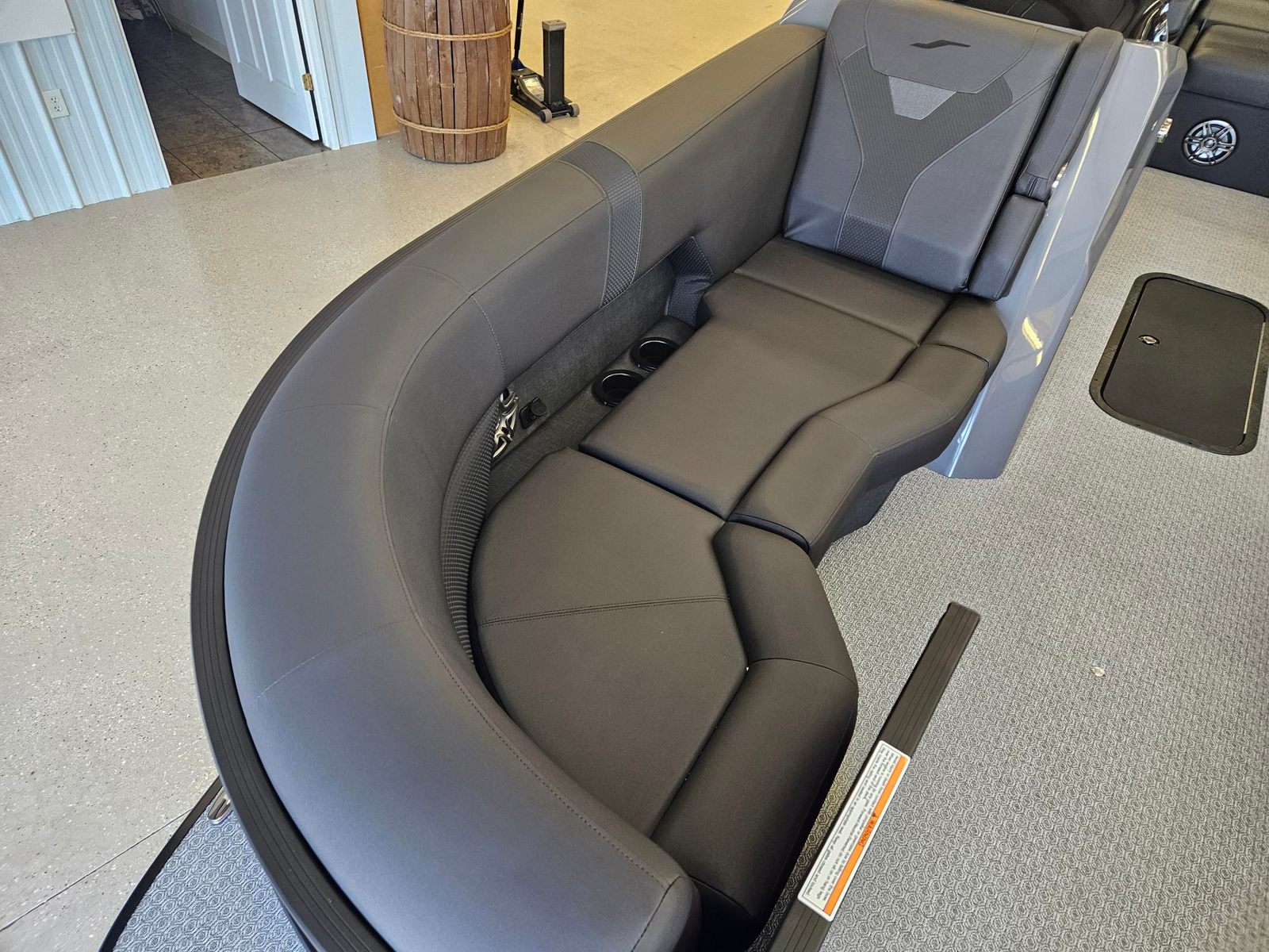 Powering the Evotti 521 CS is a robust single engine with an impressive 250 horsepower, providing the perfect balance of speed, efficiency, and reliability. This pontoon is equipped with Prerig Yamaha Mechanical - 500 Series, ensuring smooth and responsive handling for both leisurely cruises and exhilarating rides. The Single Engine Rigging & Prop system is designed for optimal performance, making every journey on the water enjoyable and worry-free. With power assist steering, maneuvering this pontoon is effortless, allowing you to navigate tight marinas or open waters with confidence and ease.