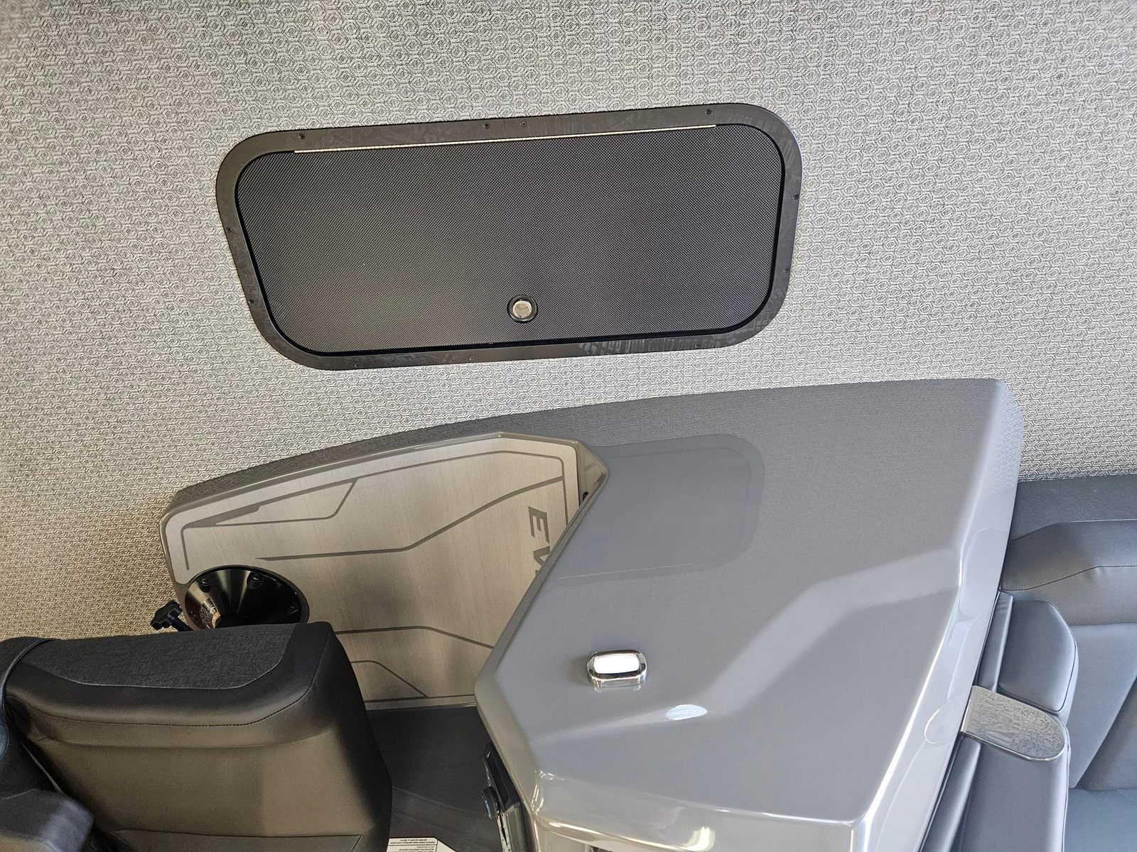 The Evotti 521 CS is packed with premium features that elevate your boating experience. The sleek windscreen offers protection from the elements while enhancing the boat’s modern aesthetic. The Garmin 943 with 5" gauges provides advanced navigation and real-time data, ensuring you stay informed and in control during every trip. The Clarion head unit and speakers deliver high-quality sound, setting the perfect atmosphere for any occasion, from lively parties to peaceful sunset cruises.Aesthetically, the Evotti 521 CS boasts a striking appearance with its Panel Evolution Red and Panel Accent Diamond Black Satin, complemented by Canvas Black and Base Vinyl Spectra Black. These design elements create a bold and sophisticated look that is sure to turn heads at any dock or marina.