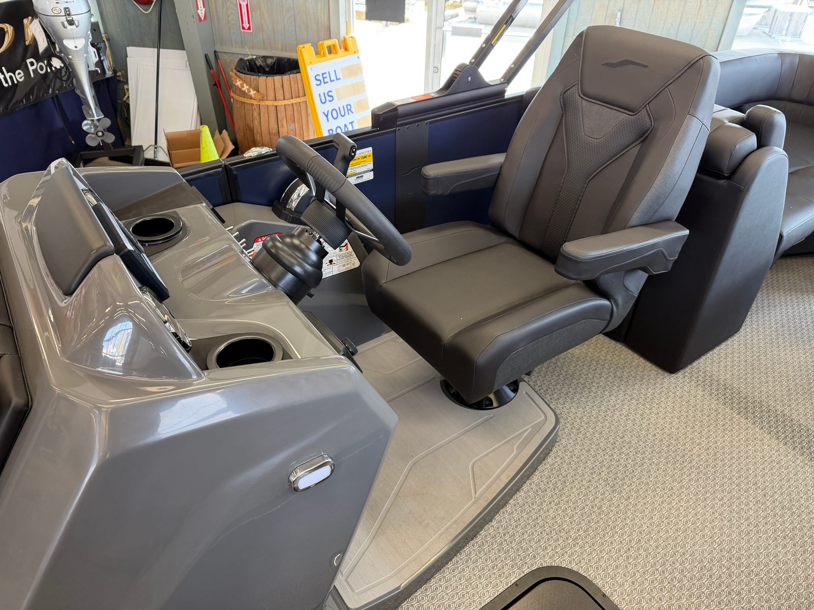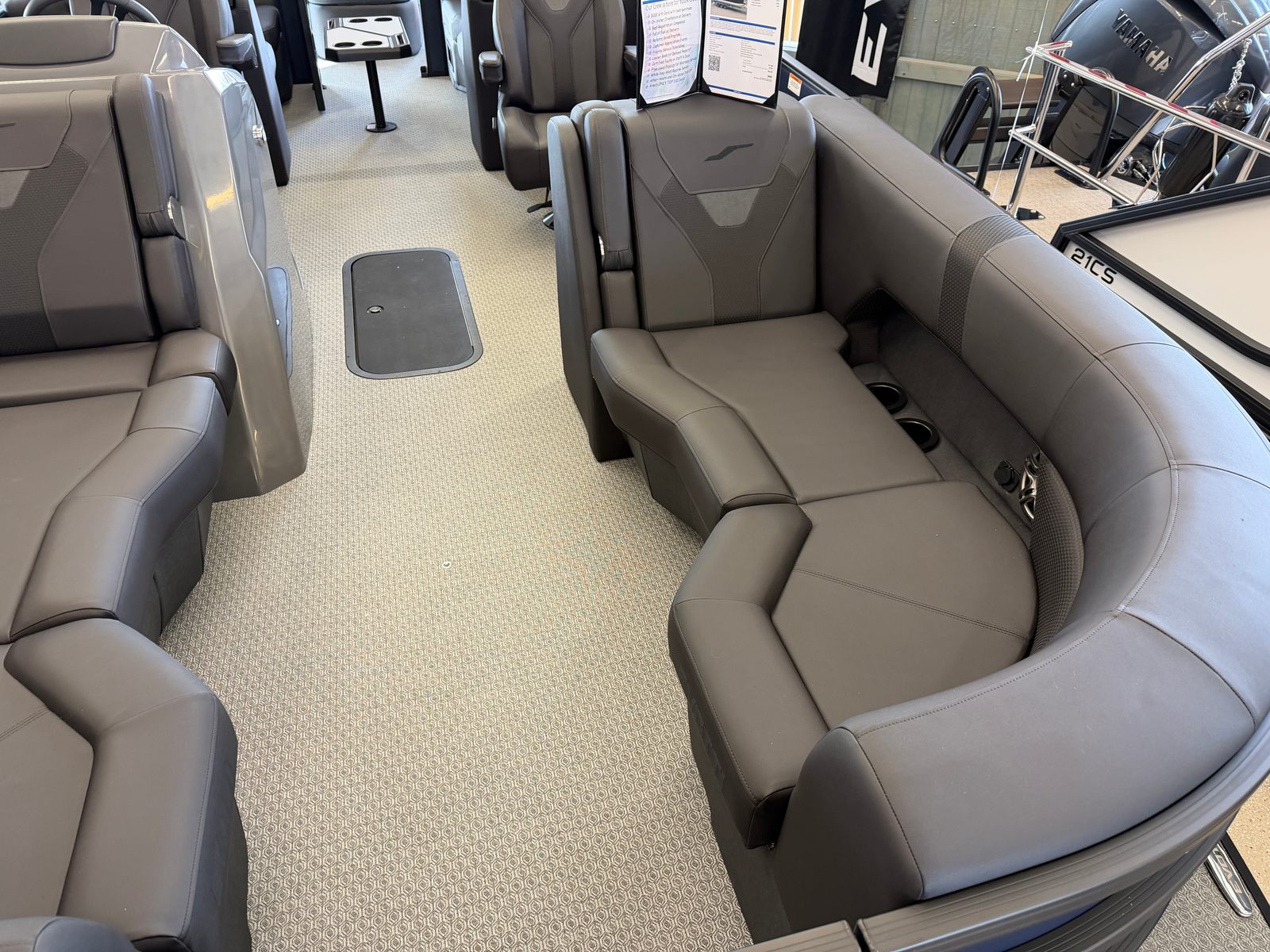 The Evotti 521 QL is designed with practicality in mind, making ownership as enjoyable as your time on the water. The thoughtfully arranged deck offers ample storage for gear, water toys, and personal items, keeping your space organized and clutter-free. The easy-to-clean flooring and resilient upholstery ensure your pontoon stays looking its best, even after a day of fun in the sun.Docking and maneuvering are simplified by the responsive handling and advanced rigging, allowing you to navigate tight spaces with confidence. The dual battery system provides peace of mind, ensuring you have the power you need for extended outings or overnight stays. Fuel efficiency is optimized by the Mercury 250XL engine, helping you spend more time cruising and less time refueling.