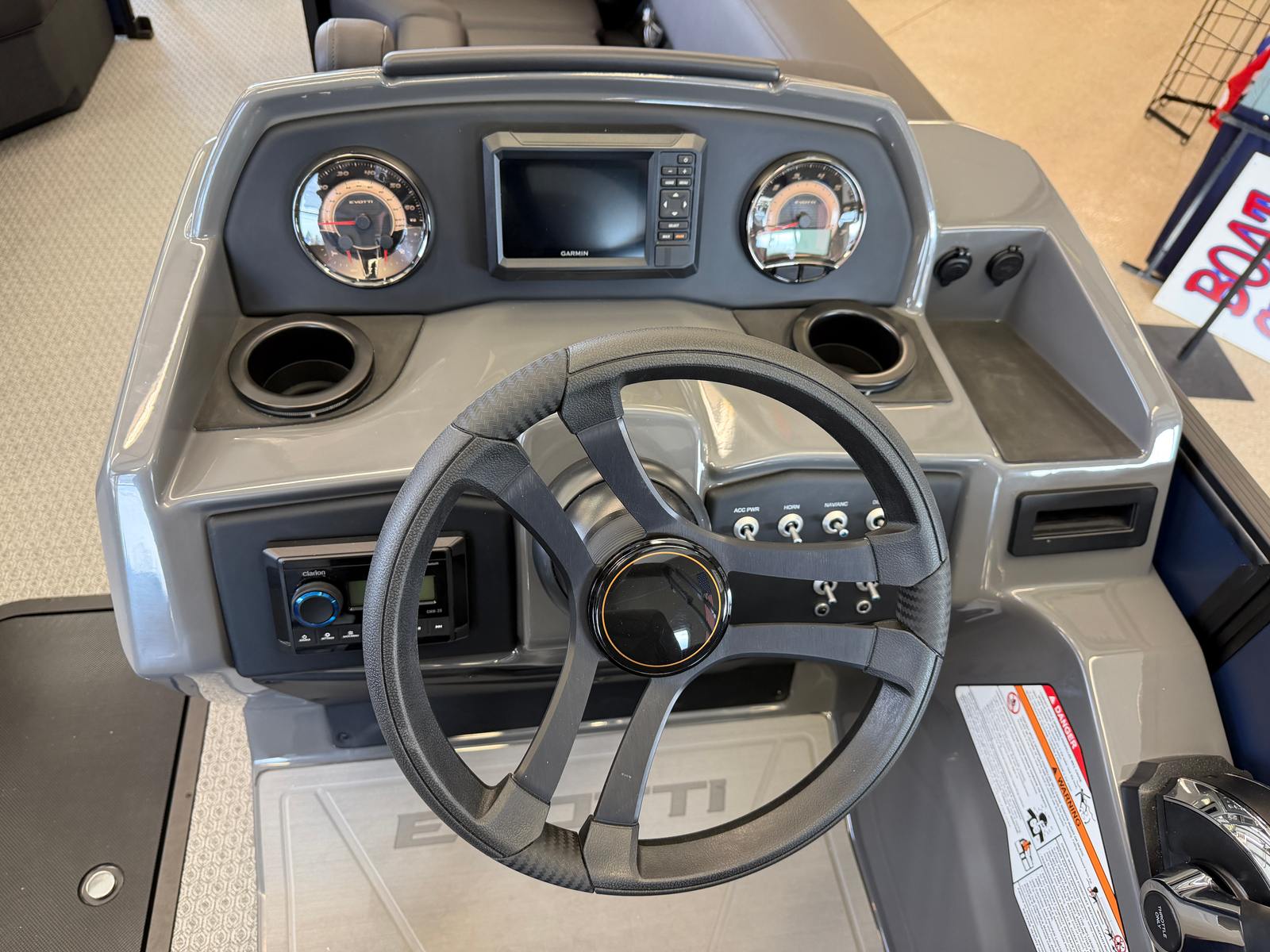 Step aboard the Evotti 521 QL and immerse yourself in a world of luxury and innovation. The Panel Platinum Blue Satin and Panel Accent Diamond Black Satin create a striking visual impression, while the Canvas Black provides both style and protection from the elements. The Base Vinyl Spectra Black upholstery is not only visually appealing but also designed for durability and comfort, ensuring your seating remains pristine season after season.The Steel Gray Evolution Flooring adds a touch of sophistication and is engineered for easy cleaning and long-lasting wear, making it ideal for active families and social gatherings. The dual battery system ensures you have reliable power for all your onboard electronics and accessories, while the Garmin 5" Echo Map with 5" gauges offers advanced navigation and real-time data at your fingertips. Every detail of the Evotti 521 QL is crafted to enhance your boating experience, from the premium finishes to the state-of-the-art technology.