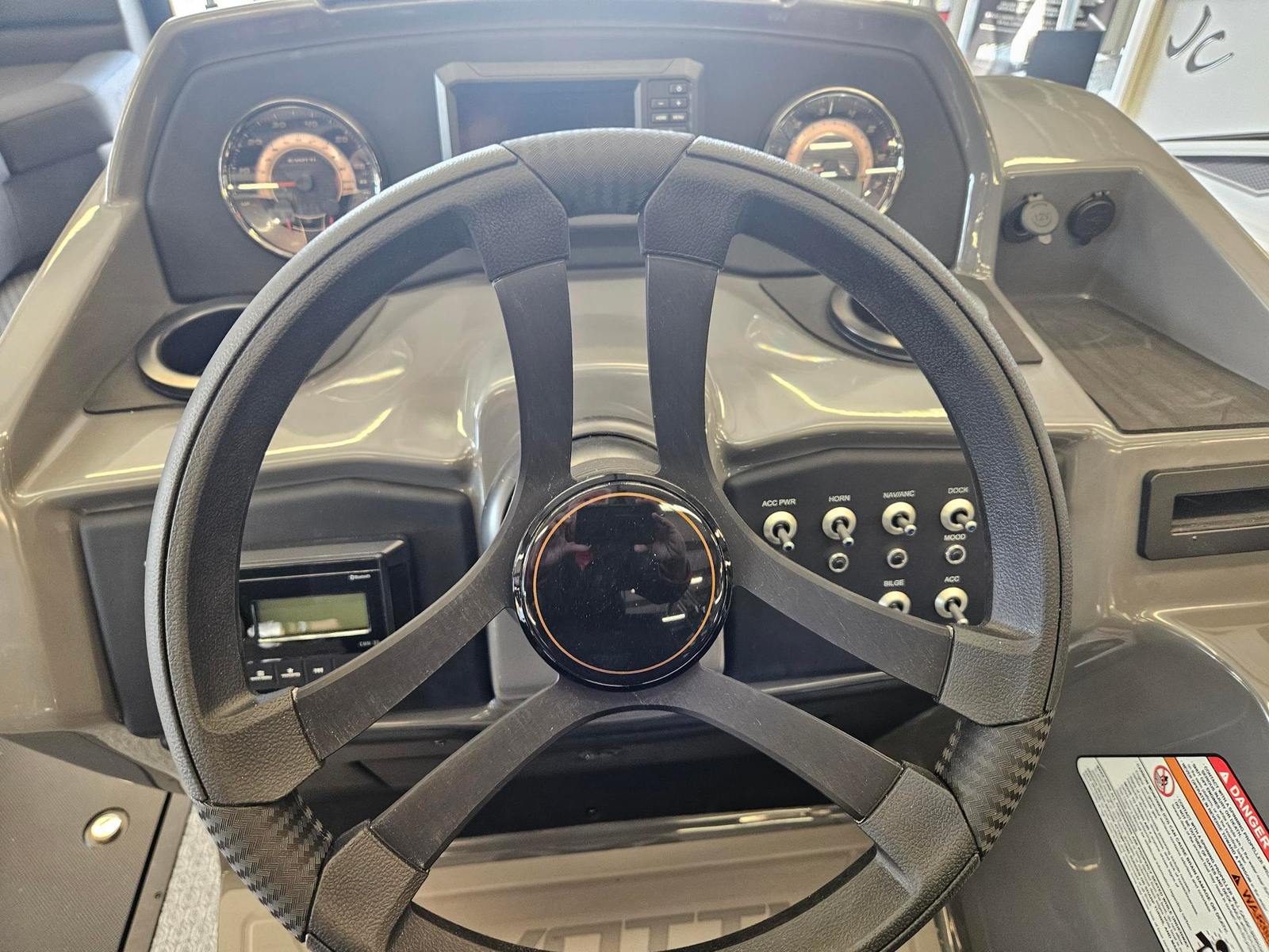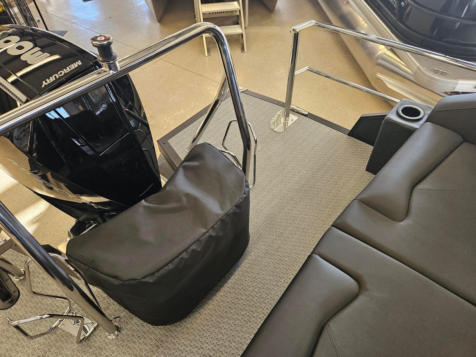 At the heart of the Evotti 523 CS is a robust Mercury 300XL Mechanical Black engine, delivering an impressive 300 horsepower. This powerhouse ensures that your pontoon glides effortlessly across lakes, rivers, and coastal waters, providing a smooth and exhilarating ride every time. The advanced prerig Mercury Mechanical 175 & Up - 500 Series system and single engine rigging & prop are engineered for optimal performance and reliability, giving you the confidence to explore new horizons with ease. Whether you’re cruising at a leisurely pace or picking up speed for watersports, the Evotti 523 CS offers responsive handling and efficient power delivery.