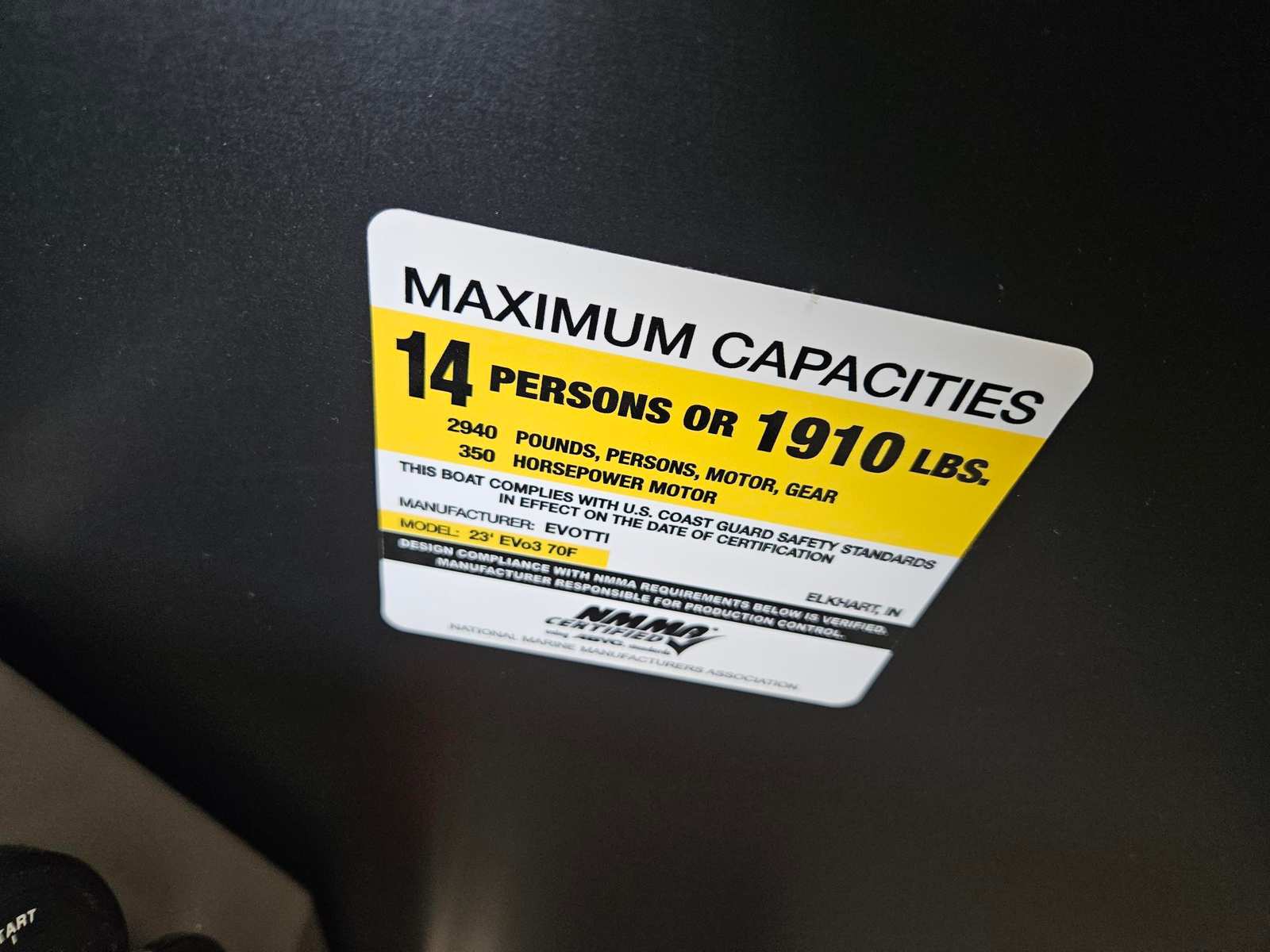 The Evotti 523 CS is designed with practicality in mind, making ownership as enjoyable as it is effortless. The 25.5-foot length strikes the perfect balance between spaciousness and maneuverability, allowing for easy docking and navigation in a variety of settings. The sturdy flooring and rail system provide added safety, while the efficient single battery setup simplifies maintenance and ensures reliable operation.Storage is thoughtfully integrated throughout the boat, allowing you to bring along all the essentials for a day of fun without cluttering the deck. The efficient engine and streamlined design contribute to better fuel economy, so you can spend more time on the water and less time at the pump. Whether you’re a seasoned boater or new to the lifestyle, the Evotti 523 CS makes every outing stress-free and enjoyable.