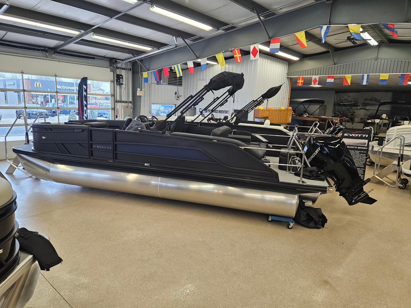 The 2026 Evotti 523 CS pontoon boat is a standout choice for anyone seeking a new pontoon boat for sale that combines luxury, performance, and practicality. With its eye-catching Panel Diamond Black Satin and Platinum Blue Satin accents, premium interior finishes, and powerful Mercury 300XL engine, this boat is designed to impress both on and off the water. The thoughtful features, such as the CS Stern Rail System, Steel Gray Evolution Flooring, and efficient single battery setup, ensure every outing is comfortable, safe, and enjoyable.Whether you’re planning family adventures, social gatherings, or solo escapes, the Evotti 523 CS delivers the perfect blend of style, comfort, and excitement. Don’t miss your chance to own this exceptional Evotti boat for sale – contact your local dealer today to learn more and start your next adventure on the water!