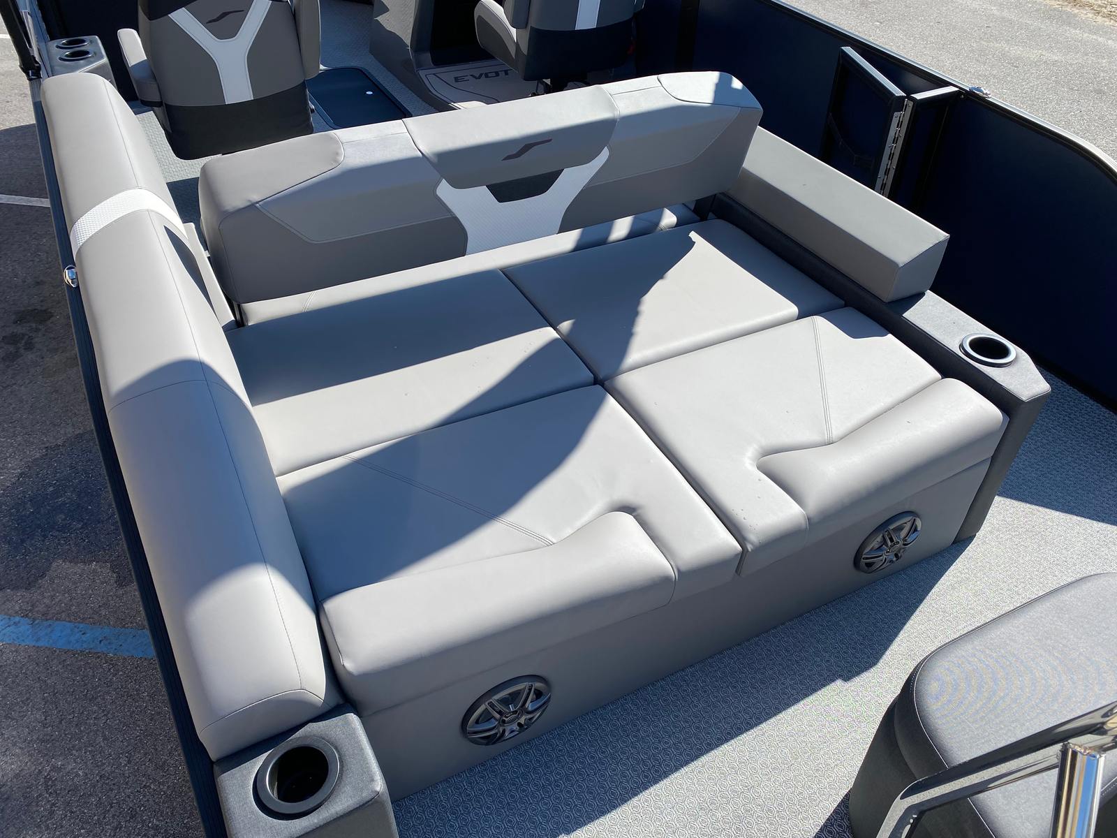 Beyond its luxurious appeal, the Evotti 523 CS is designed with practicality in mind. The spacious deck offers plenty of room for coolers, gear, and water toys, making it easy to bring everything you need for a day on the water. The sturdy construction and quality flooring provide a stable platform for all your activities, while the efficient single battery system keeps maintenance simple.Docking and maneuvering are a breeze thanks to the responsive Yamaha engine and intuitive controls. Whether you’re navigating a busy marina or pulling up to a secluded shoreline, you’ll appreciate the confidence and ease that come with this well-equipped pontoon. The durable materials and finishes are built to withstand the elements, ensuring your investment stays looking great season after season.