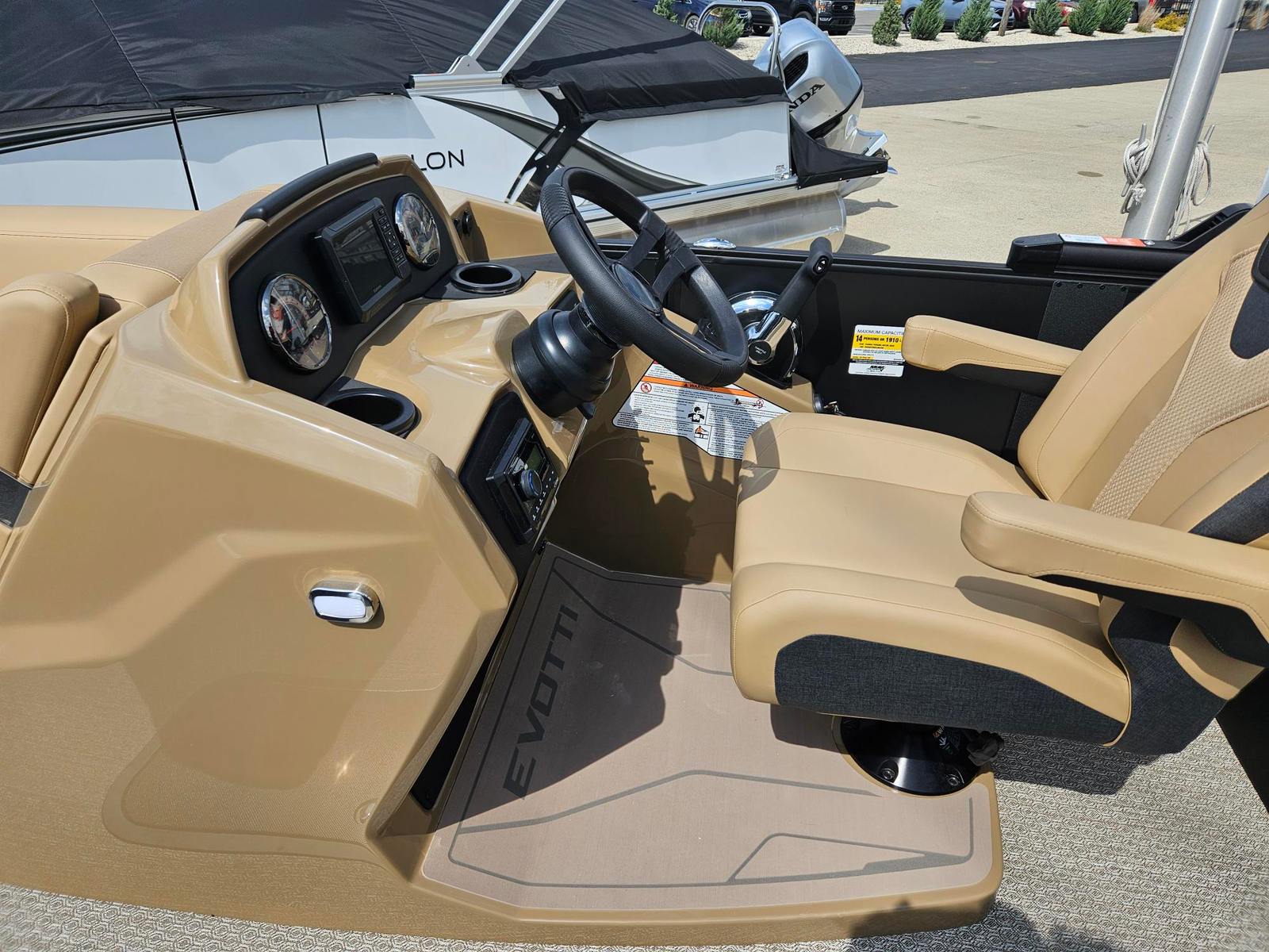 In summary, the 2026 Evotti 523 QL is a standout pontoon boat for sale that combines powerful performance, luxurious features, and versatile design. With its Mercury 200XL Mechanical Black engine, Garmin 5" Echo Map, Clarion Head Unit & Speakers, and elegant Roan Bronze Evolution Flooring, this new Evotti boat for sale is ready to deliver endless fun and relaxation on the water. Do not miss your chance to experience the ultimate in comfort, style, and adventure. Contact your local dealer today to learn more about the Evotti 523 QL and start your next boating journey.