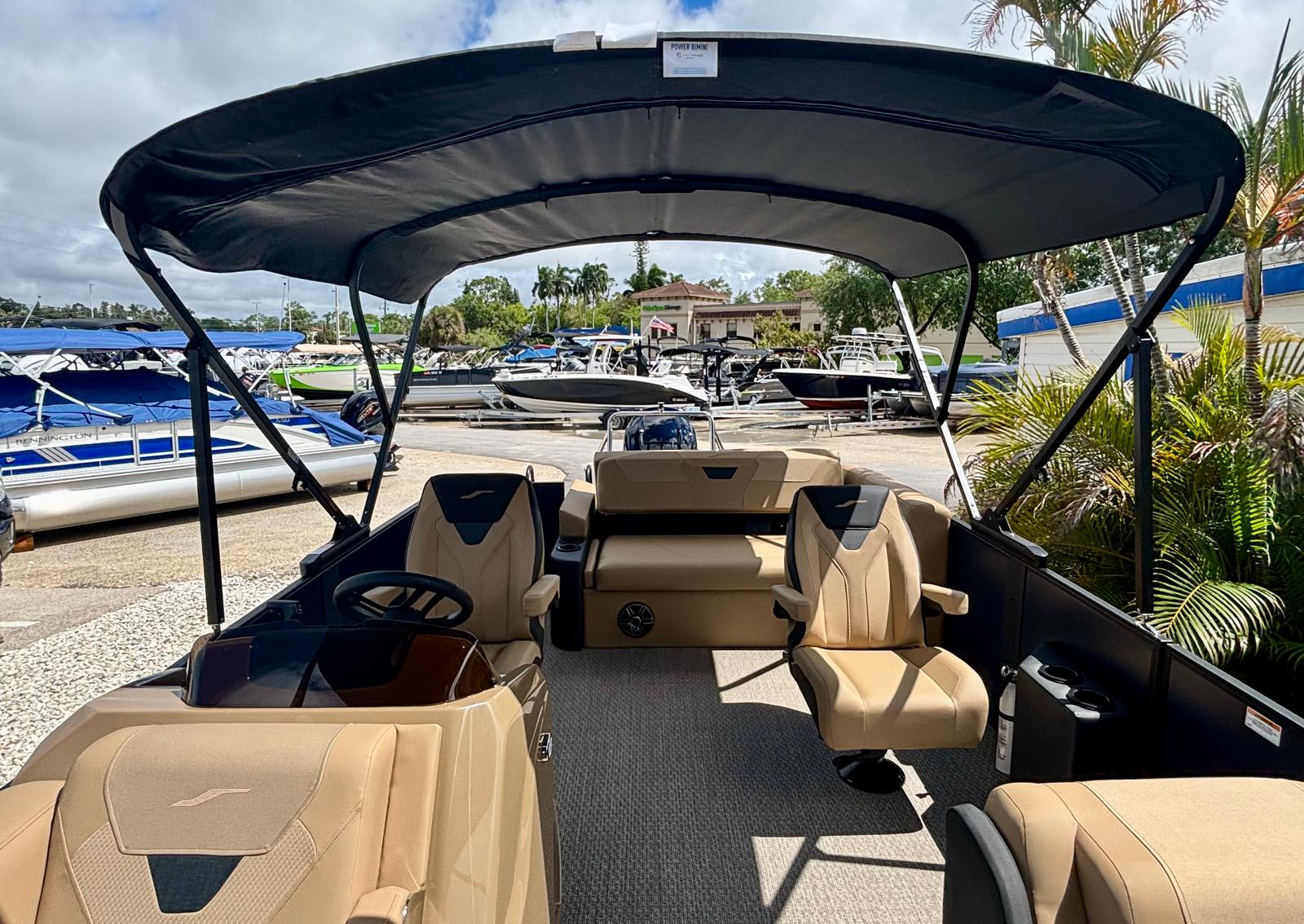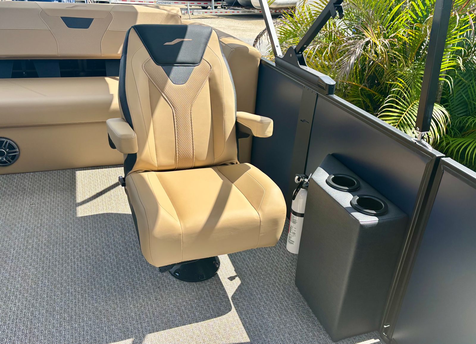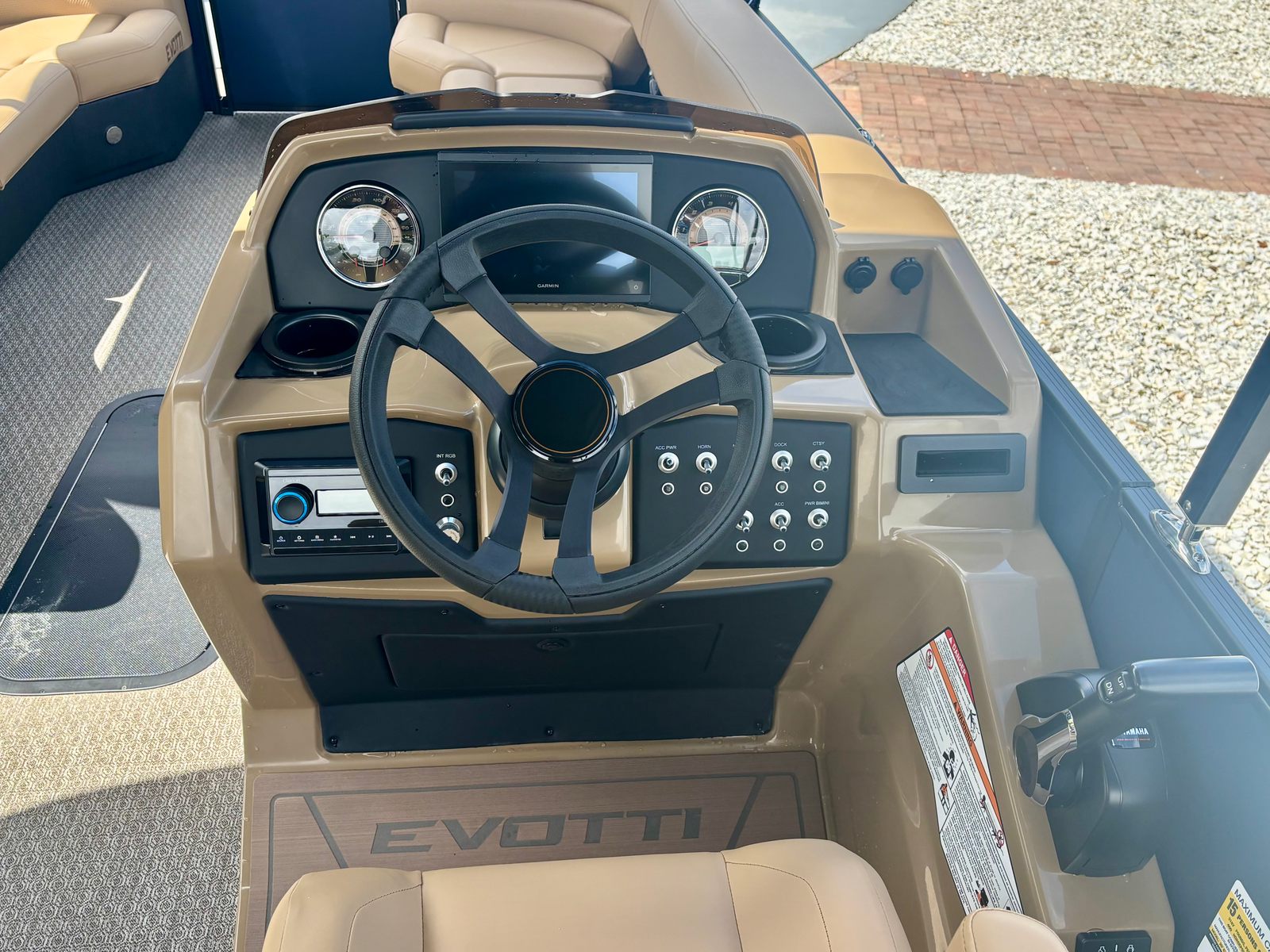 The Evotti 525 CS is loaded with premium features that enhance both comfort and functionality. The double bimini provides generous shade, allowing you and your guests to stay cool and protected from the sun during long days on the water. The battery dual system offers reliable power management, giving you peace of mind for extended trips. The panel platinum blue satin adds a touch of sophistication to the helm, while the canvas black and base vinyl roan bronze create a striking visual contrast that is both modern and timeless. The roan bronze evolution flooring is not only stylish but also durable and easy to maintain, ensuring your pontoon boat remains in pristine condition season after season.For those who appreciate advanced technology, the Garmin 943 with 5" gauges delivers precise navigation and real-time data, making it easier than ever to monitor your boat’s performance and stay on course. Every detail of the Evotti 525 CS has been thoughtfully designed to maximize your enjoyment and convenience on the water.
