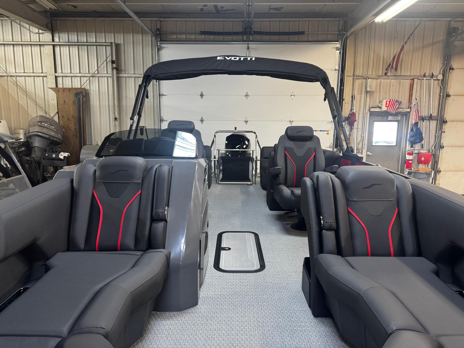 In summary, the 2026 Evotti 721 QL pontoon boat for sale is a remarkable combination of style, performance, and innovation. With its striking Panel Evolution Red and Pearl White Gloss accents, comfortable and durable interior, advanced 15" Ultra Wide Display, and premium JL audio system, this Evotti boat for sale offers everything you need for unforgettable days on the water. The powerful Mercury 200XL engine ensures exhilarating performance, while the thoughtful design and practical features make ownership a pleasure.If you are ready to elevate your boating lifestyle and create lasting memories with family and friends, the Evotti 721 QL is the perfect choice. Don’t miss the opportunity to own this exceptional pontoon – contact your local dealer today to learn more and schedule a viewing. Your next adventure awaits aboard the Evotti 721 QL!