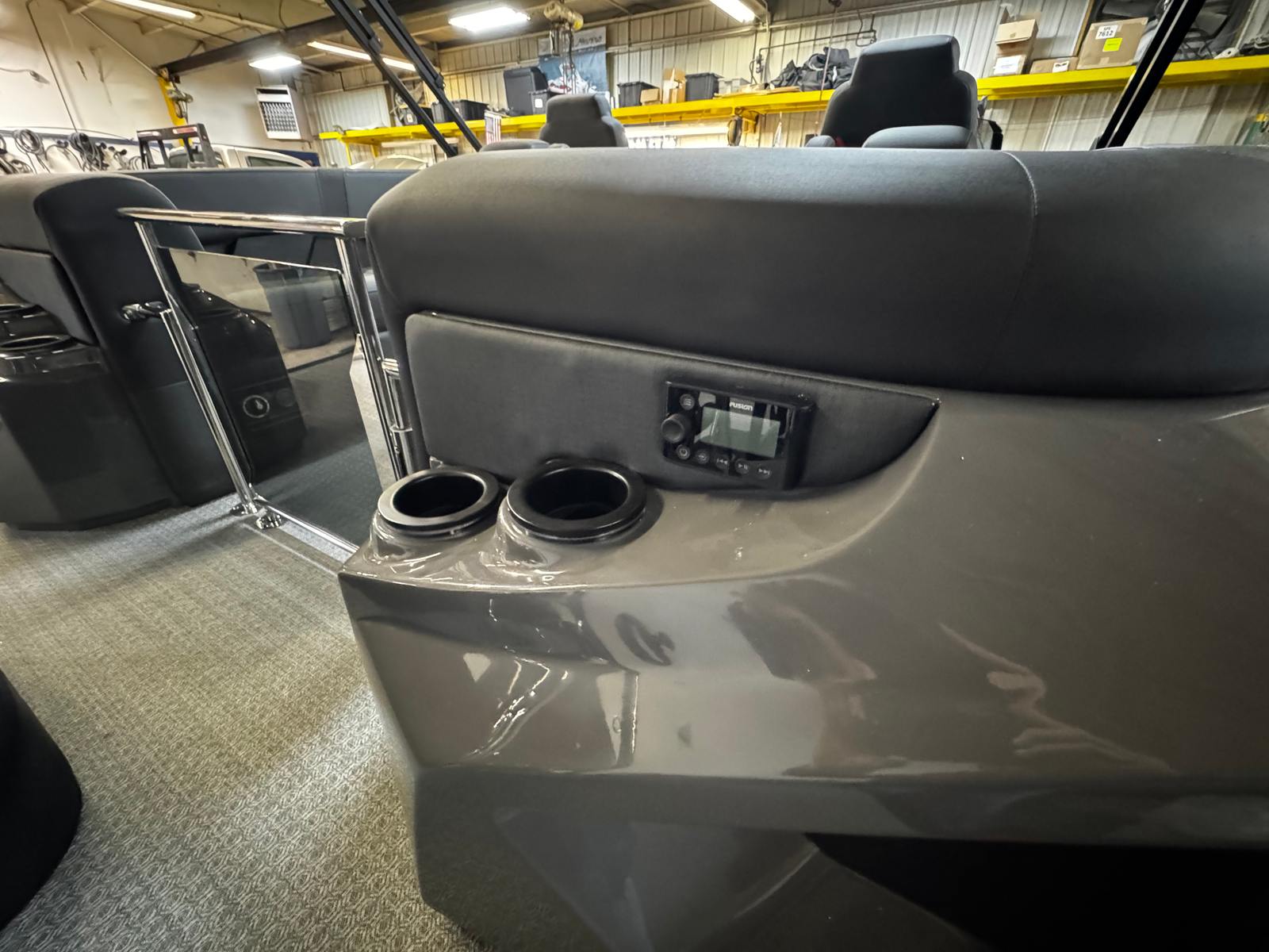 Step aboard the Evotti 721 QL and discover a world of comfort and innovation. The interior is adorned with Base Vinyl Spectra Black upholstery, offering a sophisticated and durable seating environment. The Steel Gray Evolution Flooring not only enhances the boat’s modern appeal but also provides a slip-resistant and easy-to-clean surface, perfect for active days on the water. The Canvas Black accents add a touch of elegance and protection from the elements, ensuring your outings are enjoyable in any weather.At the helm, the 15" Ultra Wide Display puts navigation and system controls at your fingertips, making it easier than ever to monitor your journey and manage onboard features. For music lovers, the JL Premium Head Unit & Speakers deliver crystal-clear audio, setting the perfect soundtrack for every adventure. Whether you are hosting a party or enjoying a quiet sunset cruise, the sound system ensures every moment is accompanied by high-quality entertainment.