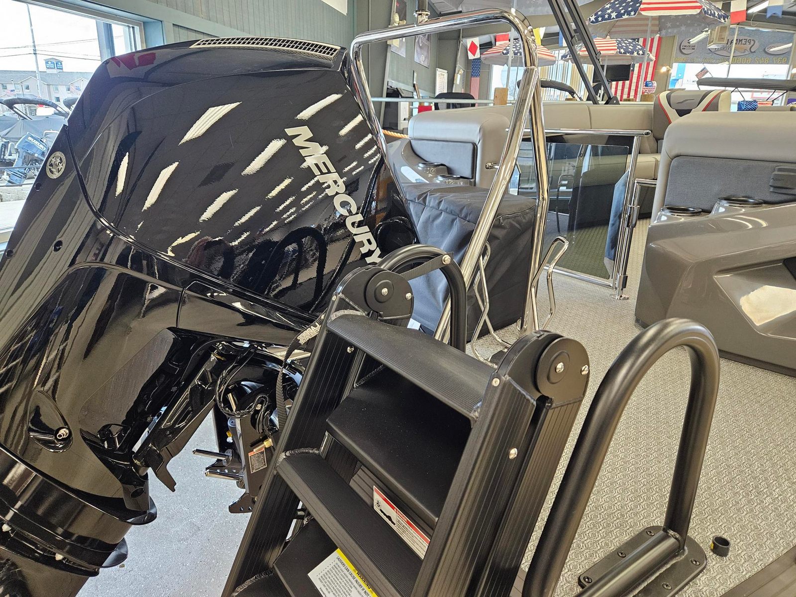 Power and precision come standard on the Evotti 723 QL, thanks to the robust Mercury 250XL engine. With 250 horsepower at your command, this pontoon boat delivers exhilarating acceleration, smooth cruising, and reliable performance for all your on-water adventures. The Prerig Mercury Mechanical 175 & Up - 700 Series ensures seamless integration and optimal operation, while the Single Engine Rigging & Prop system maximizes efficiency and control. Whether you are towing water toys, cruising to your favorite cove, or simply enjoying a sunset ride, the Evotti 723 QL offers the power and responsiveness you need for a thrilling boating experience.