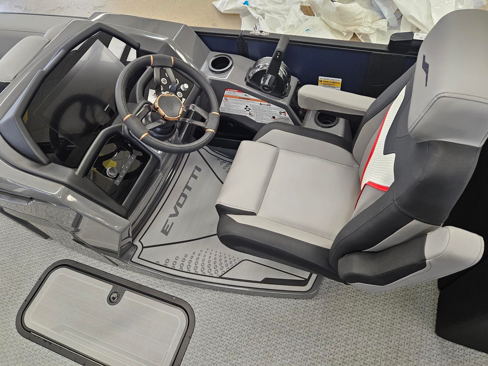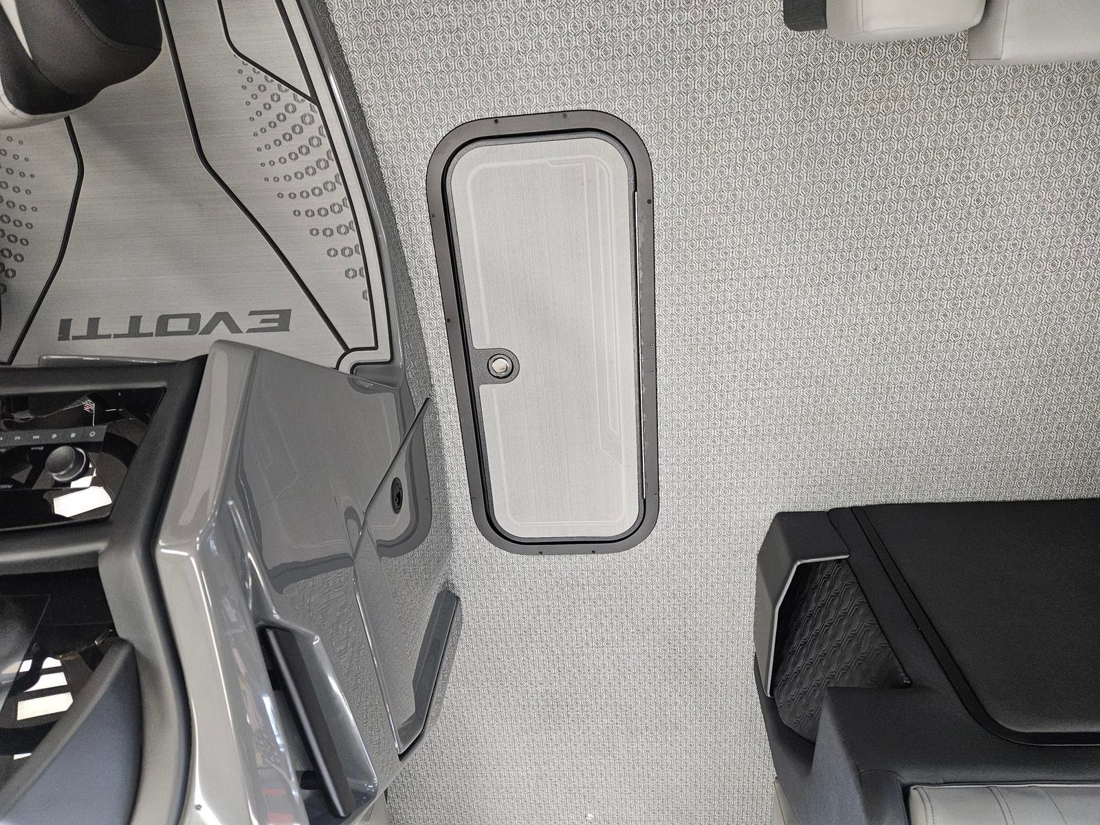 The Evotti 723 QL is packed with premium features designed to enhance your time on the water. The Panel Titanium Silver Gloss and Panel Accent Platinum Blue Satin create a head-turning exterior, while the Canvas Black provides shade and protection. Inside, the Base Vinyl Steel Gray upholstery is both comfortable and durable, perfectly complemented by the Steel Gray Evolution Flooring, which offers a non-slip, easy-to-clean surface.One of the standout features is the Port Bench with Omni Chaise 723QL, providing versatile seating options for lounging, socializing, or simply soaking up the sun. The 15" Ultra Wide Display puts navigation and system controls at your fingertips, making it easy to monitor your boat’s performance and stay informed while underway. Every detail of the Evotti 723 QL has been thoughtfully designed to deliver comfort, convenience, and style.