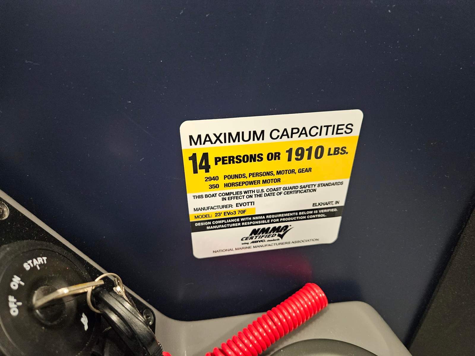 The Evotti 723 QL is as practical as it is luxurious. The spacious layout and smart storage solutions make it easy to bring along all your gear, from coolers and water toys to fishing equipment and picnic supplies. The durable Steel Gray Evolution Flooring stands up to heavy foot traffic and is simple to clean, ensuring your pontoon boat looks great season after season.Docking and maneuvering are a breeze, thanks to the responsive handling and efficient Single Engine Rigging & Prop system. The sturdy construction and high-quality materials provide peace of mind, whether you are navigating busy marinas or anchoring in your favorite secluded spot. With its fuel-efficient design, the Evotti 723 QL lets you spend more time on the water and less time at the pump.