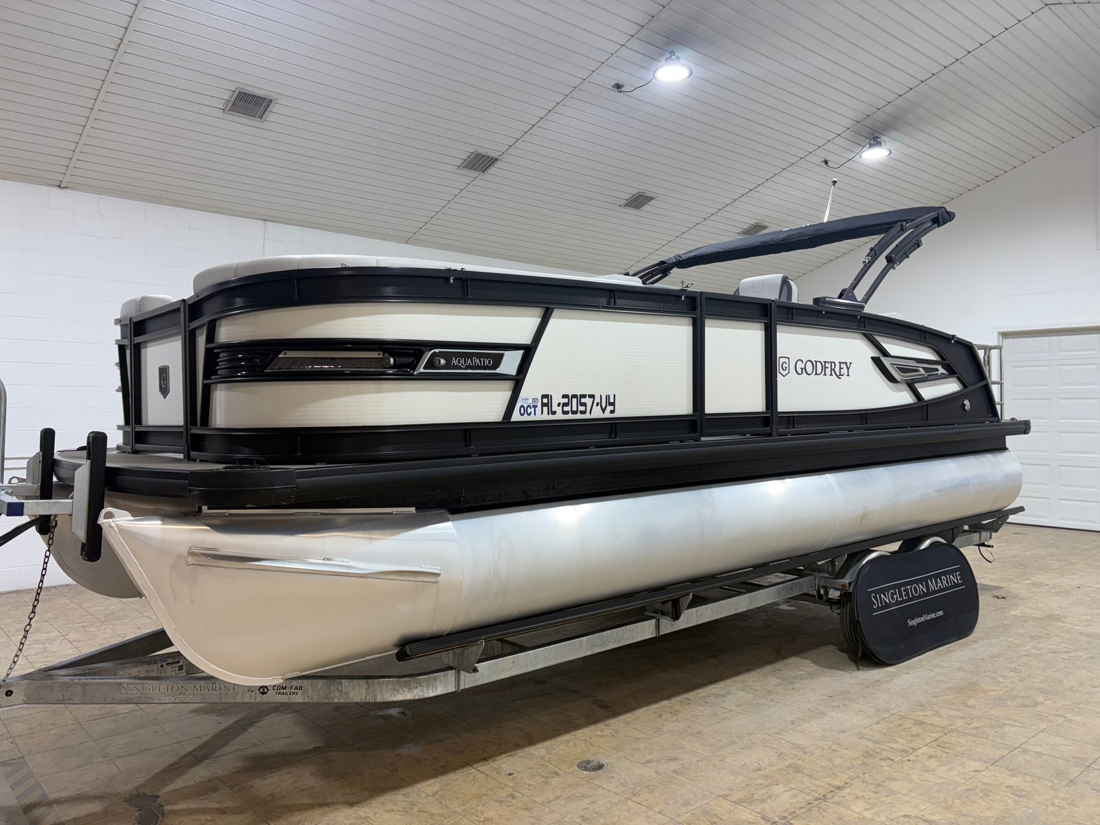 The 2024 Godfrey Aqua Patio 235 Sflc is a 23-foot pontoon boat designed to deliver exceptional comfort and style. With its spacious layout and modern amenities, this used pontoon boat offers a premium boating experience for those who appreciate quality craftsmanship and innovative design. The Godfrey Aqua Patio series is renowned for its attention to detail, and the 235 Sflc model is no exception, making it a sought-after option for anyone looking for a reliable and stylish pontoon boat for sale.