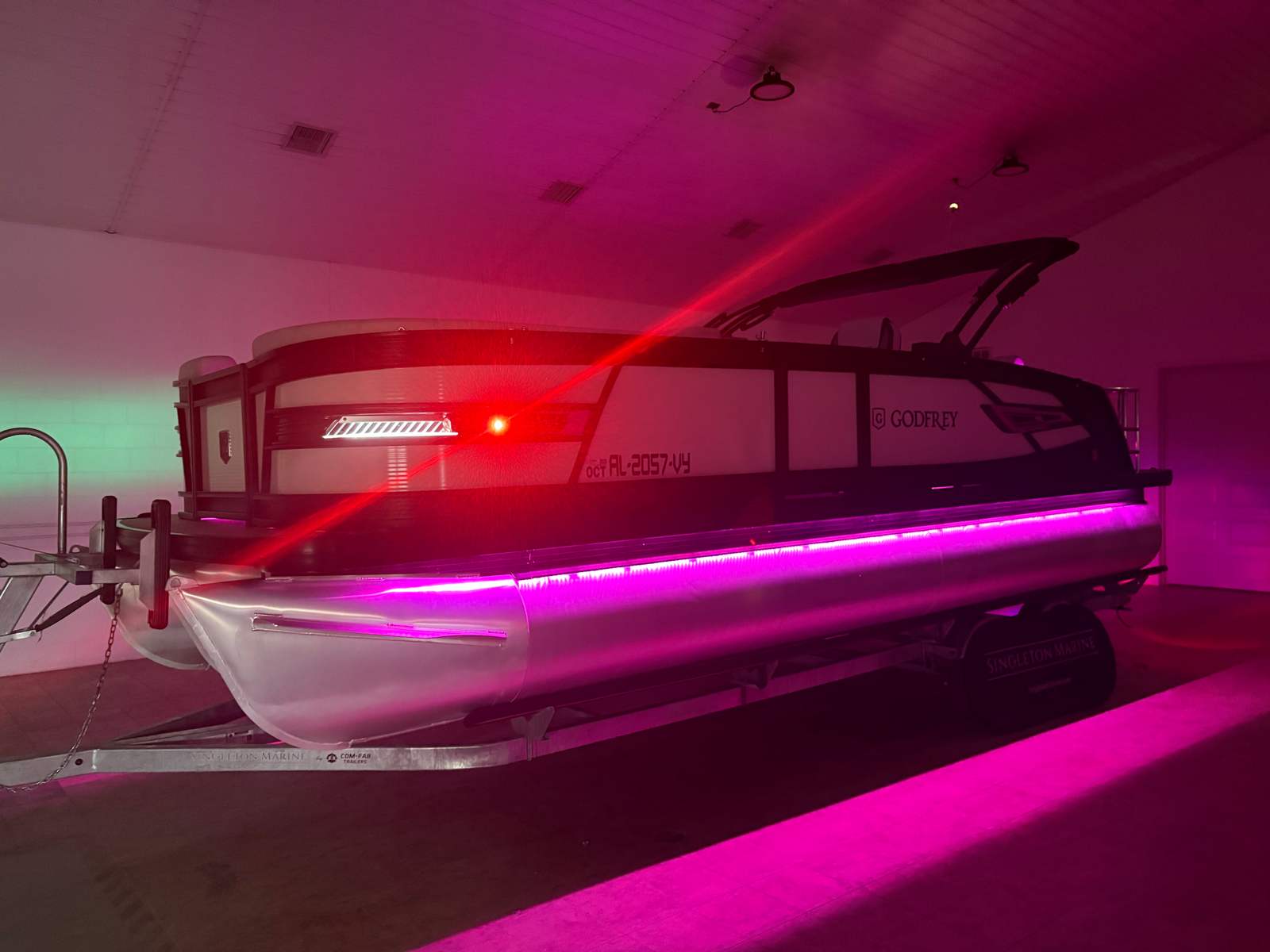 The Godfrey Aqua Patio 235 Sflc shines in a variety of scenarios, making it a versatile choice for different types of boaters. For families, it’s the perfect platform for weekend outings, picnics, and water sports. The spacious deck and comfortable seating make it easy to accommodate guests, while the advanced lighting features set the stage for evening gatherings and celebrations.Fishing enthusiasts will appreciate the stability and ample space, making it easy to cast lines and enjoy a relaxing day on the water. For those seeking luxury getaways, the stylish design and premium features create an inviting environment for unwinding and enjoying the beauty of nature. Whether you’re cruising with friends, hosting a party, or exploring new destinations, this pontoon boat for sale adapts to your needs and enhances every adventure.
