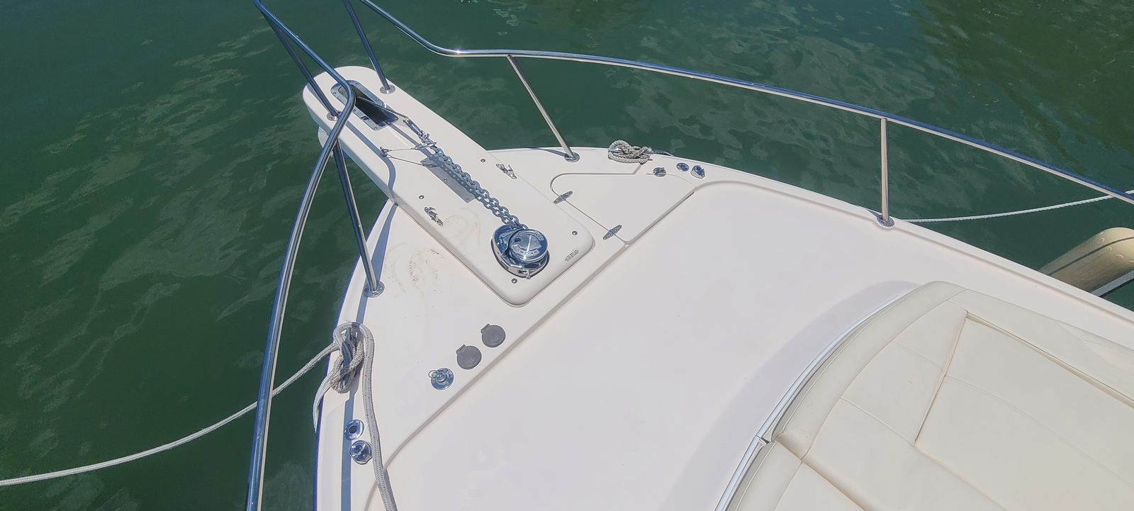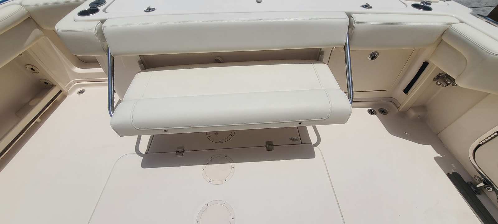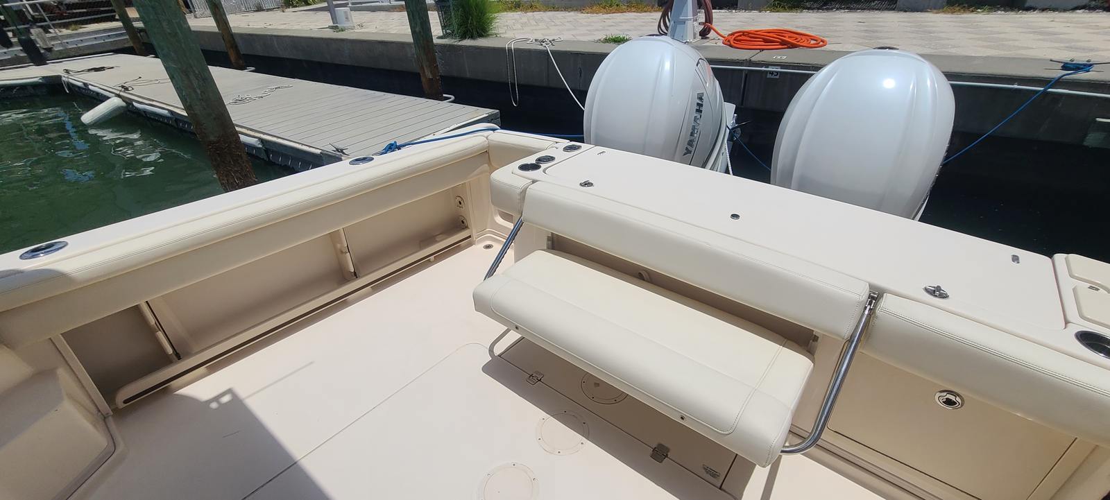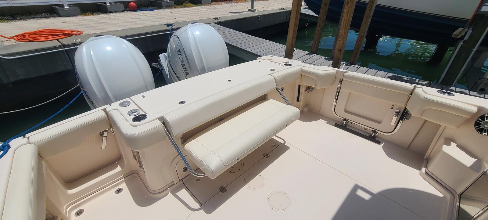 Powered by twin engines delivering a combined 850 horsepower, the Grady-White Express 330 offers exhilarating performance and responsive handling. The dual-engine setup ensures smooth acceleration, impressive top speeds, and enhanced maneuverability, whether you’re navigating tight marinas or heading out to your favorite fishing spot. With only 195 engine hours, these motors promise years of dependable service, giving you confidence every time you set out on the water. The Express 330’s advanced hull design further contributes to a stable, dry ride, even in choppy conditions, making it a standout among fishing boats for sale.