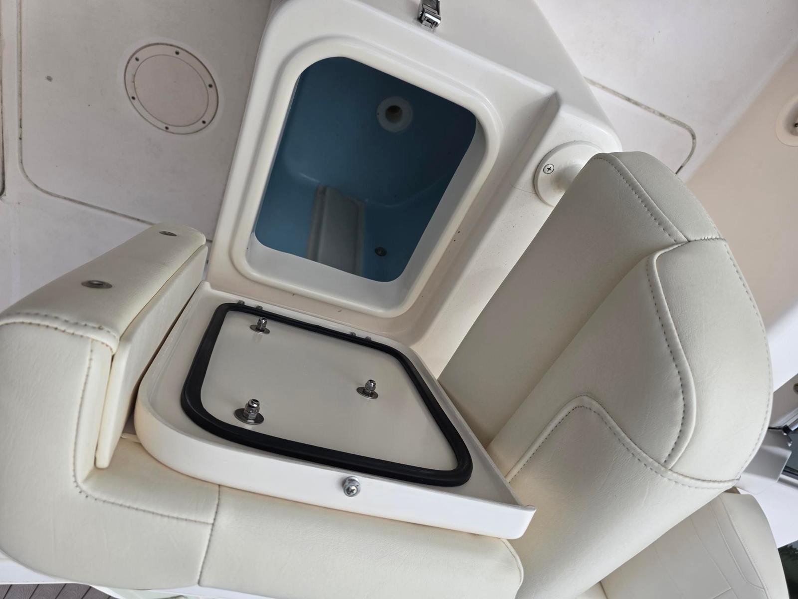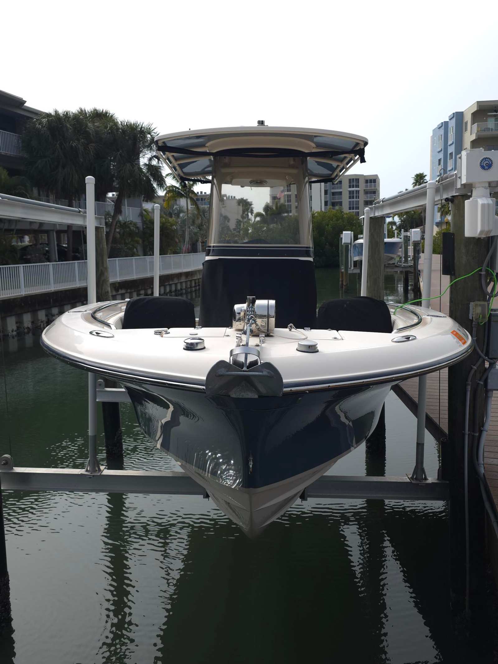 Canvas covers for seat back rests and full helm cover, Porta Head plumbed in with pump out connection, Engine Flush kit, Ski Package, Added Lemar electric Windlass, stainless steel cup holders all around, Radio box in TTOP, Rocket Launchers, Swim ladder, Fusion Stereo system, Trim Tabs, LED Trim indicators, Garmin VH Radio with antenna, Garmin GPSmap xsv and Compass... NoTrailer.