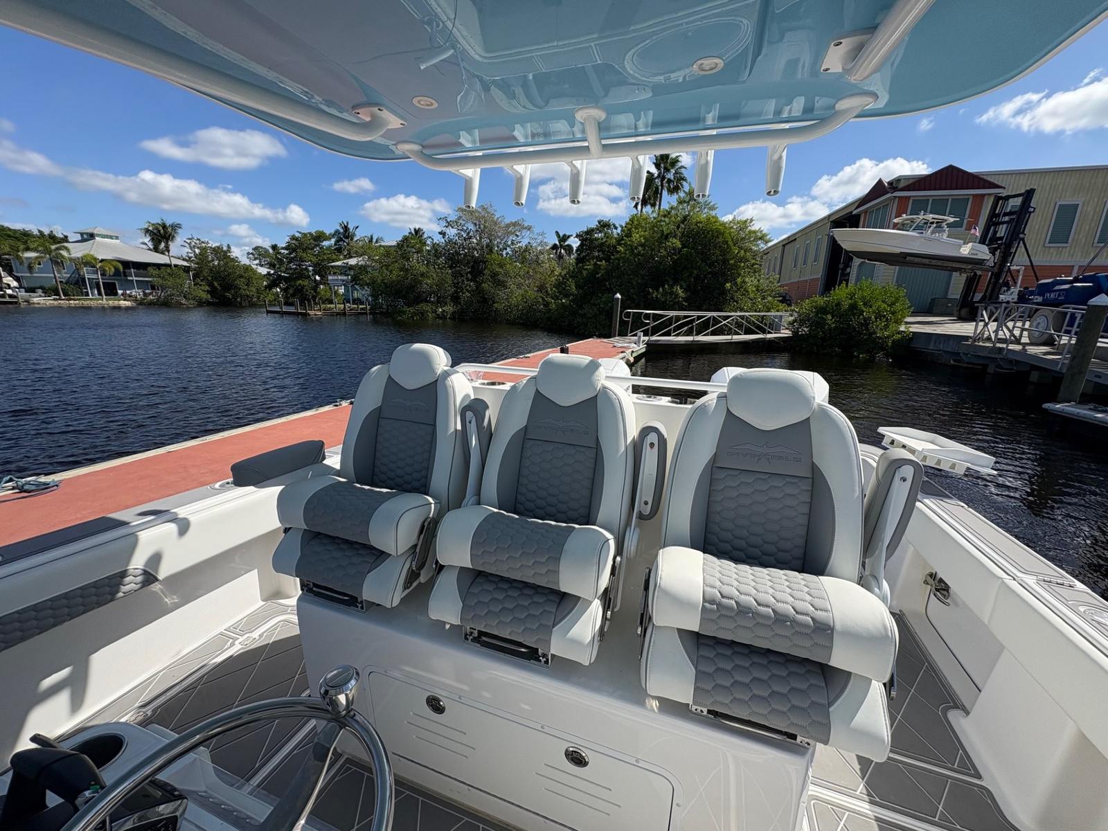 The Invincible 35 Catamaran is as practical as it is fun. Its spacious layout offers plenty of storage for gear, coolers, and personal items, ensuring you have everything you need for a day on the water. The efficient hull design not only enhances performance but also contributes to better fuel economy, allowing you to spend more time enjoying the water and less time refueling. Docking is a breeze thanks to the responsive handling and twin-engine setup, making it easy to navigate tight spaces and marinas. Whether you’re planning a quick afternoon escape or a full day of adventure, this Center Console boat for sale is equipped to handle it all with ease.