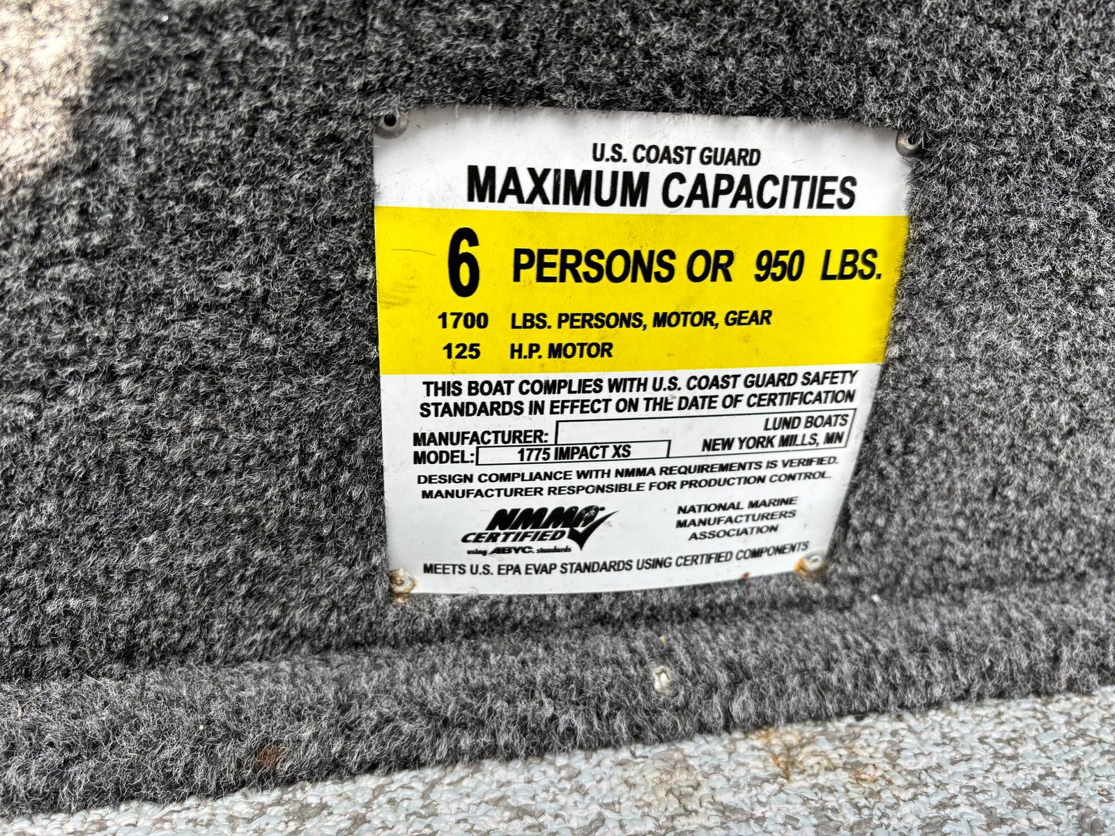 This fishing boat for sale is designed with practicality in mind. The generous storage compartments make it easy to stow rods, tackle, and personal items, keeping the deck clutter-free and safe. The manageable length of 17.11 feet allows for easy docking and maneuvering, even in tight spaces or busy marinas. Fuel efficiency is a hallmark of the Lund 1775 Impact XS, ensuring you can spend more time on the water without worrying about frequent refueling. The sturdy hull and reliable engine mean maintenance is straightforward, allowing you to focus on enjoying your boat rather than dealing with unexpected issues. Whether you’re heading out for a quick evening fish or planning a full-day adventure, this Lund boat for sale is ready to deliver.