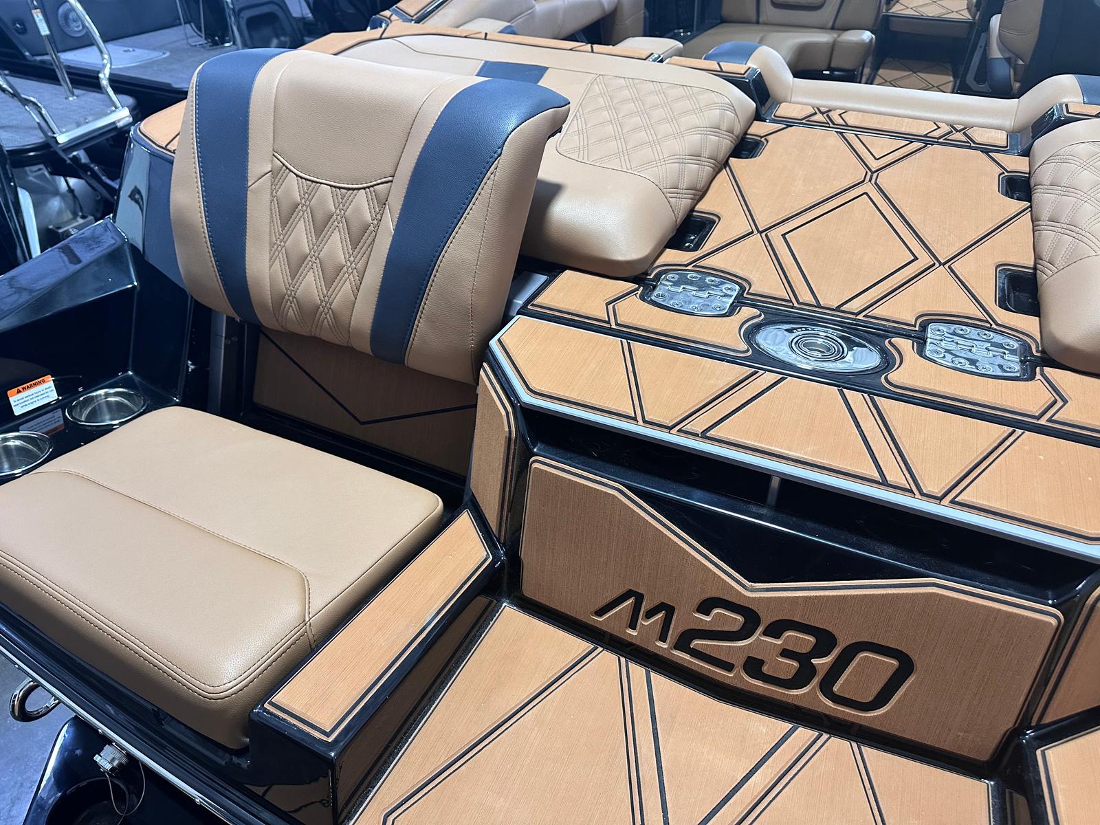 At the heart of the M230 is a powerful single engine boasting an incredible 606 horsepower. This robust engine delivers exhilarating acceleration and smooth handling, allowing you to carve through the water with precision and confidence. Whether you’re pulling wakeboarders, skiers, or tubers, the M230’s performance capabilities ensure you have all the power you need for high-energy water sports. The advanced engineering behind this Ski & Wakeboard boat for sale guarantees reliability and efficiency, so you can focus on enjoying every moment on the water.