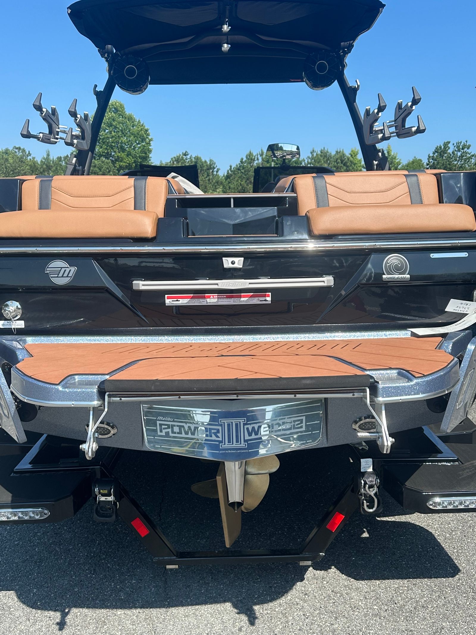 This Malibu boat for sale is loaded with special features designed to enhance your time on the water. The Zero Off GPS system provides precise speed control, ensuring consistent and reliable towing for skiers and wakeboarders. The Ballast HI FLO - Midship eMLS4ffd system allows you to customize your wake, creating the perfect conditions for every rider. The Sepia Brown- Deck Trac Main Color adds a touch of sophistication, while the Ebony-Wakesetter Hull Side Graphics give the boat a bold and distinctive look.The RGB Lighting System transforms evening cruises into vibrant celebrations, illuminating the cabin and deck with customizable colors. Rapid Lock Fender technology makes docking and undocking a breeze, saving you time and effort. Cell Phone Holders with Cabin/Bow Wireless Charging keep your devices powered and secure, so you can capture every moment without worry. The Flip Down Step Swimboard offers easy access to the water, making it simple for swimmers and boarders to get in and out of the boat. The Malibu Ice Box keeps your refreshments chilled and ready for those long, sun-soaked days on the lake.