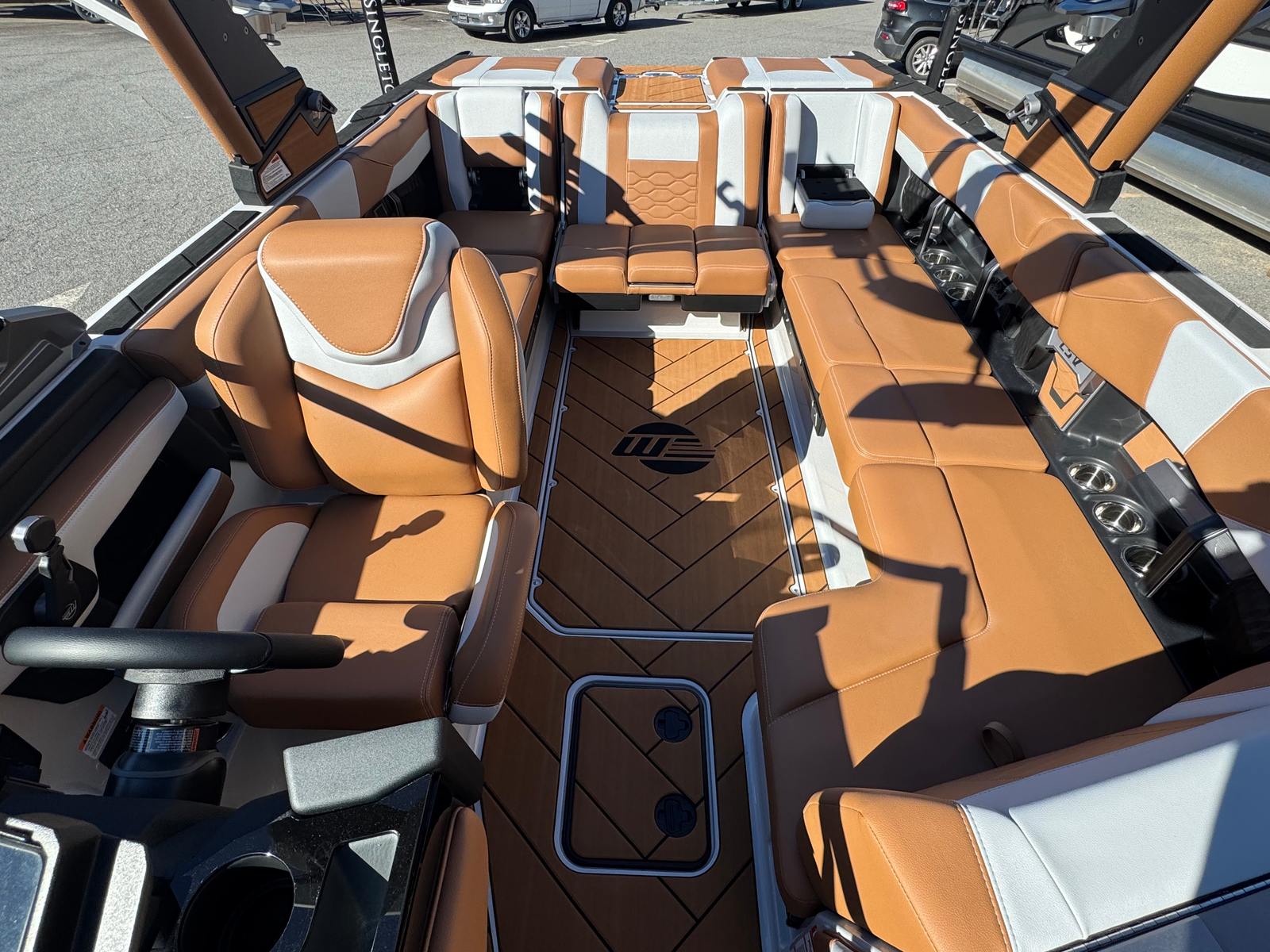 The 2026 Malibu Wakesetter 23 LSV comes loaded with special features that set it apart from other Ski & Wakeboard boats for sale. The CS Boat Cover with APS 3 and Swimboard Cover provides superior protection for your investment, keeping your boat looking pristine season after season. The PTM Dual Coverage Bimini with rope and surf board storage offers ample shade and convenient storage solutions, making it easy to keep your gear organized and accessible. The heater with three outlets ensures comfort on cooler days, allowing you to extend your boating season and enjoy the water year-round. The Sound System - 23 LSV Pack delivers premium audio quality, creating the perfect soundtrack for your adventures. The Sepia Brown Wakesetter hull graphics add a touch of elegance and style, making this Malibu boat for sale as visually stunning as it is functional.
