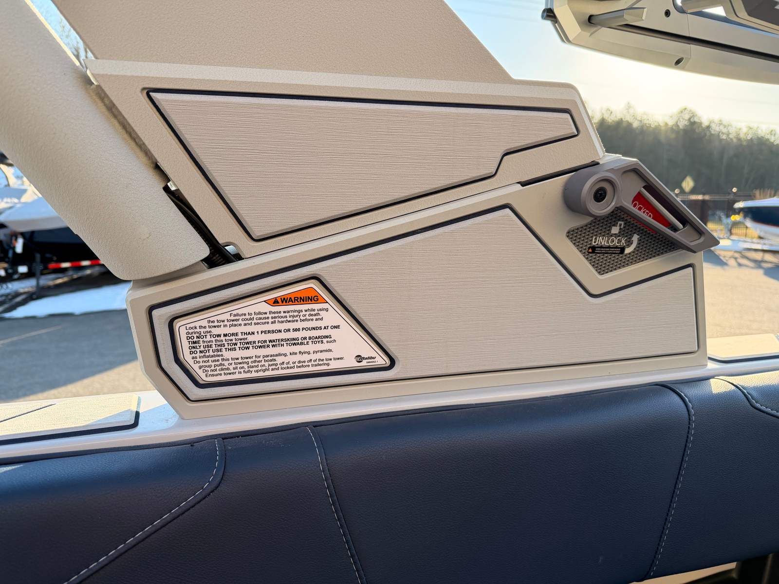 At the heart of the 2026 Malibu Wakesetter 23 LSV is the powerful Malibu Monsoon M6DI engine, boasting an impressive 460 horsepower. This single-engine setup is designed for optimal efficiency and responsiveness, ensuring you have all the power you need to create massive wakes, pull multiple riders, or cruise effortlessly at your preferred speed. The advanced 250a alternator supports all your onboard electronics, while the exhaust surf pipe enhances both performance and environmental friendliness by reducing emissions and noise. With its robust engine and precision engineering, this Malibu boat for sale is built to handle the demands of serious water sports while maintaining smooth and reliable operation.