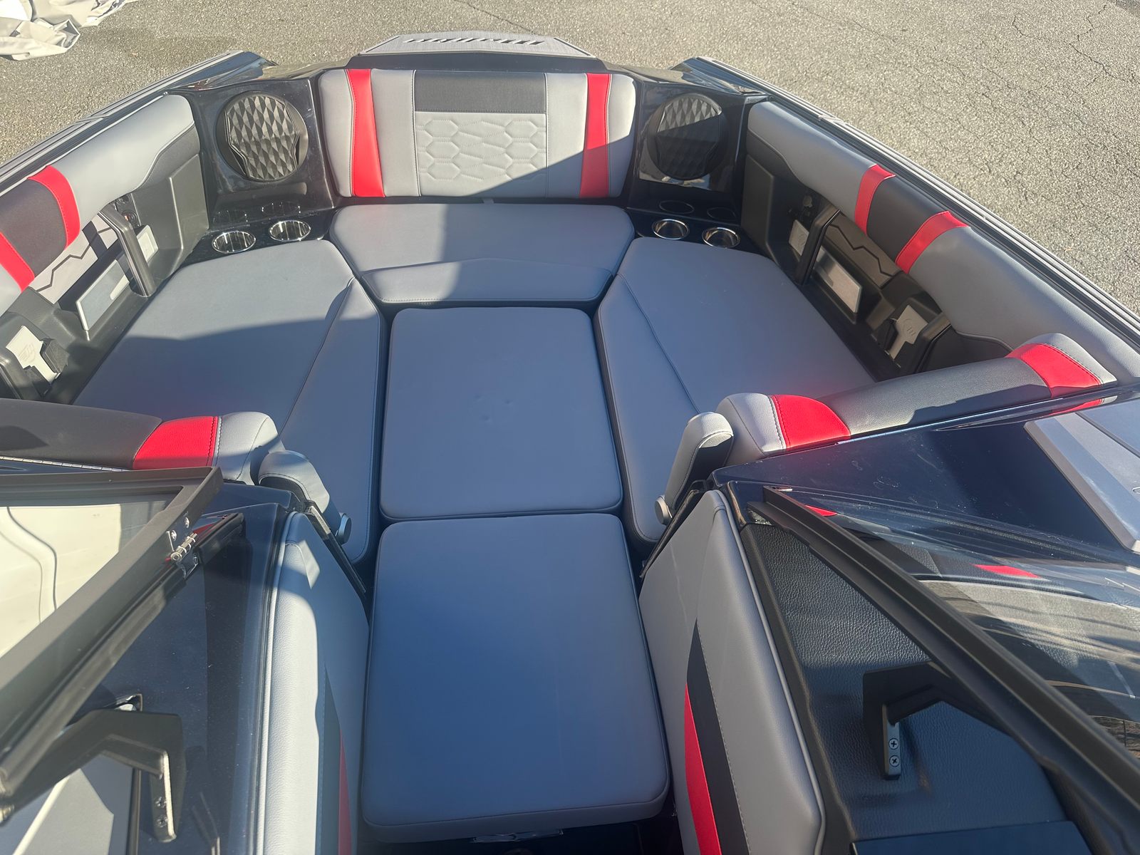 The Malibu Wakesetter 23 MXZ is as practical as it is fun. The boat’s generous storage options, including dedicated spaces for ropes and surfboards, keep your deck clutter-free and your gear easily accessible. The swimboard cover and boat cover protect your boat from the elements, reducing maintenance and preserving its stunning appearance.Docking and maneuvering are made easier thanks to the responsive handling and well-designed hull, giving you confidence whether you are pulling into a busy marina or launching from your favorite ramp. The efficient engine and alternator setup help optimize fuel usage and power delivery, so you can spend more time on the water and less time refueling or worrying about battery life.
