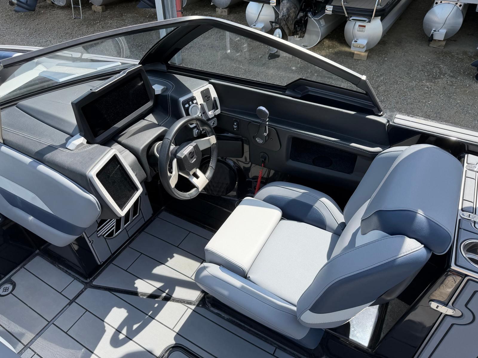 The 2023 Malibu Wakesetter 24 MXZ is packed with features that enhance both performance and comfort. Its spacious 24-foot length offers ample room for friends and family, making it ideal for social gatherings and group outings. The open bow and expansive cockpit layout ensure everyone has a comfortable seat, while the premium upholstery and modern finishes create a luxurious atmosphere on board. The boat’s advanced ballast system allows you to customize the wake for different activities, from surfing to wakeboarding, ensuring every rider gets the perfect ride. The intuitive helm station puts all controls at your fingertips, making it easy to adjust settings and monitor performance as you cruise.