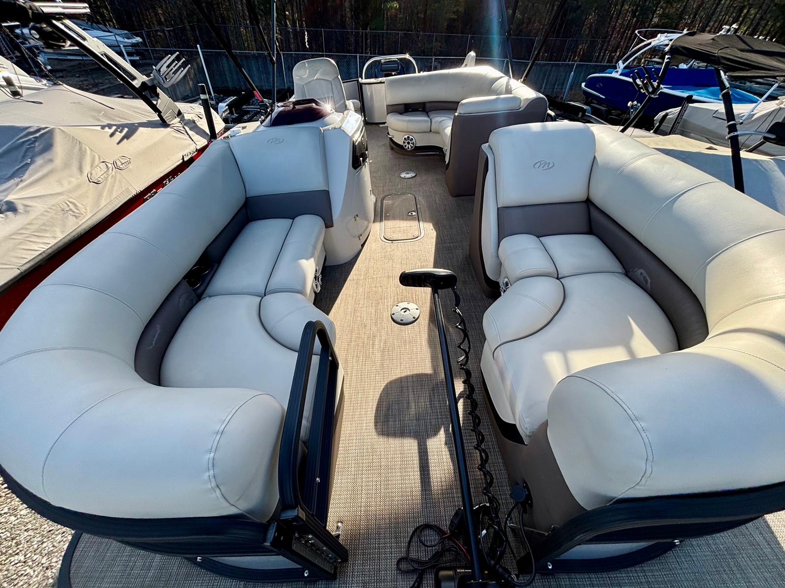 THIS 2020 MANITOU OASIS ANGLER 220 SHP WITH ONLY 95 HOURS ON THE 250 HP MERCURY PRO XS FOUR STROKE. FULL ENGINE SERVICE AND INSPECTION JUST COMPLETED.