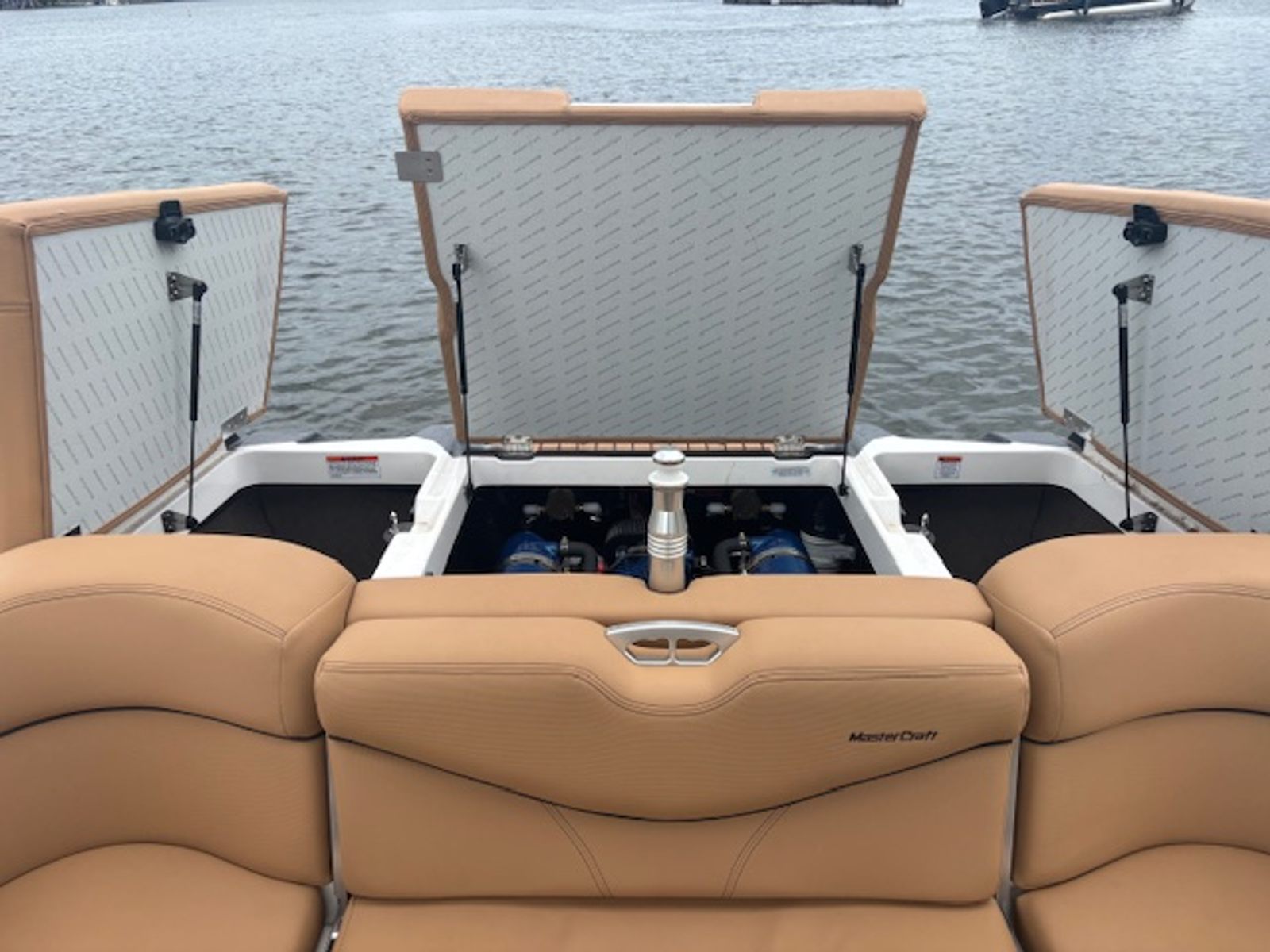 The Mastercraft XT22 is engineered with the needs of water sports lovers in mind. Its spacious 22.33-foot layout provides plenty of room for your crew to relax, socialize, and gear up for action. The boat’s design maximizes comfort and convenience, making it easy to transition from thrilling rides to laid-back lounging. The XT22’s hull is crafted for optimal wake creation, giving you the perfect platform for skiing and wakeboarding. Every detail, from the seating arrangement to the storage compartments, is thoughtfully designed to enhance your time on the water.