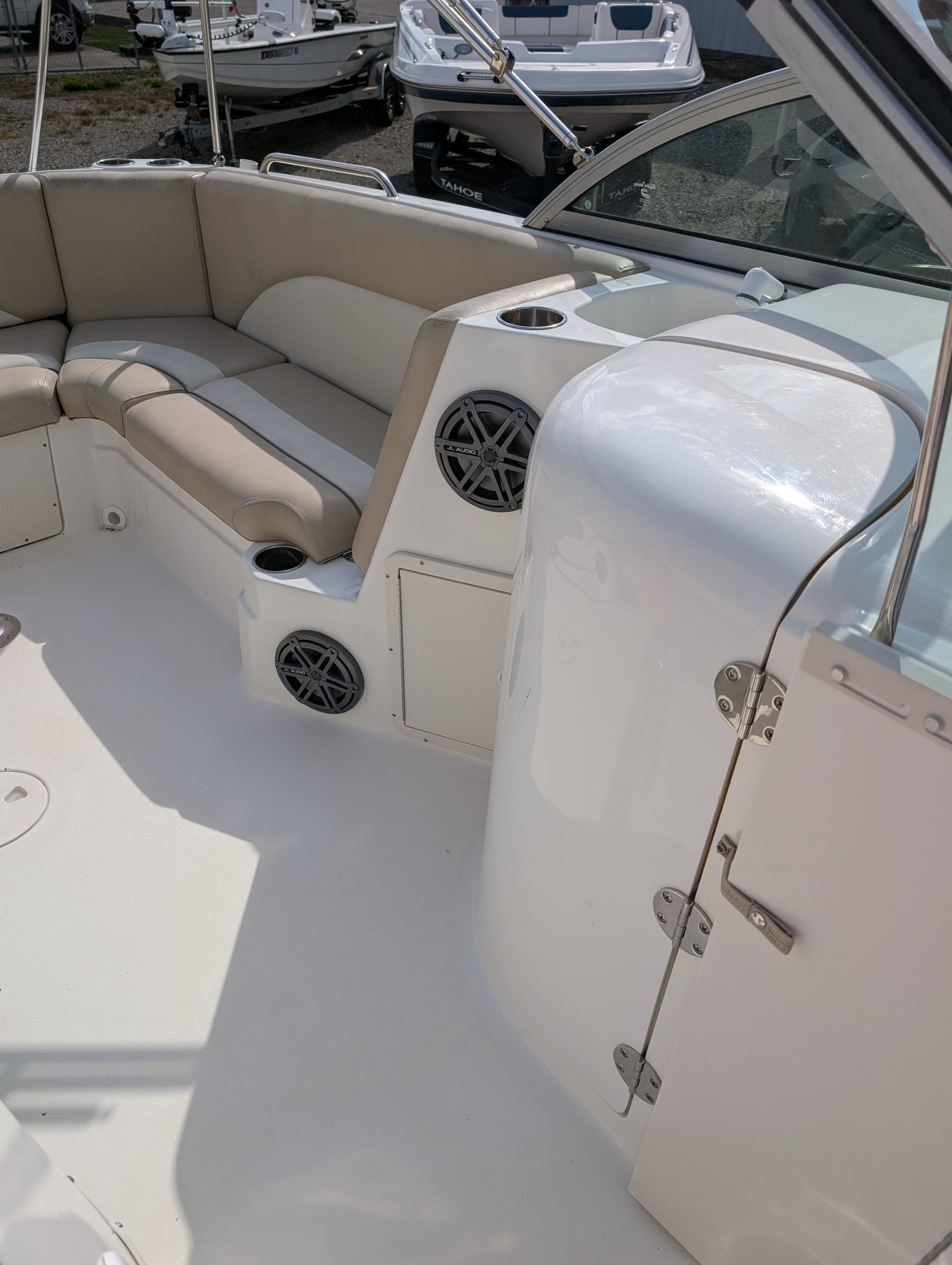 This Nauticstar boat for sale is packed with features that enhance both its functionality and comfort. The Dual Console design provides separate seating and storage areas, allowing for greater flexibility and convenience. The spacious cockpit and bow seating areas are perfect for relaxing, socializing, or enjoying a picnic on the water. The ergonomic helm station offers excellent visibility and easy access to controls, ensuring a stress-free driving experience. Ample storage compartments throughout the boat make it easy to stow away gear, life jackets, and other essentials, keeping the deck clutter-free and organized.