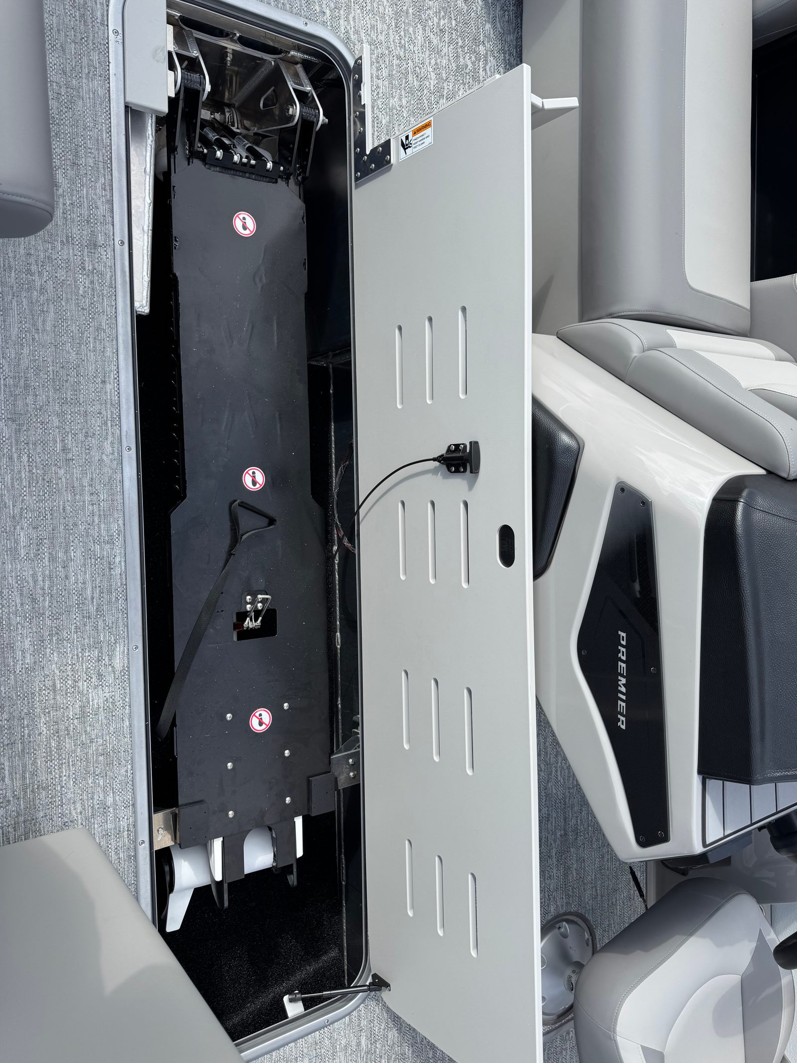 The Premier 230 Sunsation Angler 2PT is thoughtfully designed to enhance every aspect of your boating experience. Its spacious 24.42-foot deck provides ample room for family, friends, and all your gear, making it ideal for both social gatherings and solo adventures. The pontoon’s layout is optimized for comfort and convenience, with plush seating, easy-to-navigate walkways, and dedicated spaces for relaxation and recreation.Special features of the 230 Sunsation Angler 2PT include angler-friendly amenities that make fishing trips more enjoyable and productive. The boat’s design incorporates practical storage solutions for rods and tackle, as well as strategically placed seating for optimal casting and reeling. Every detail is crafted to ensure that your time on the water is as comfortable and enjoyable as possible, whether you are fishing, sunbathing, or entertaining guests.