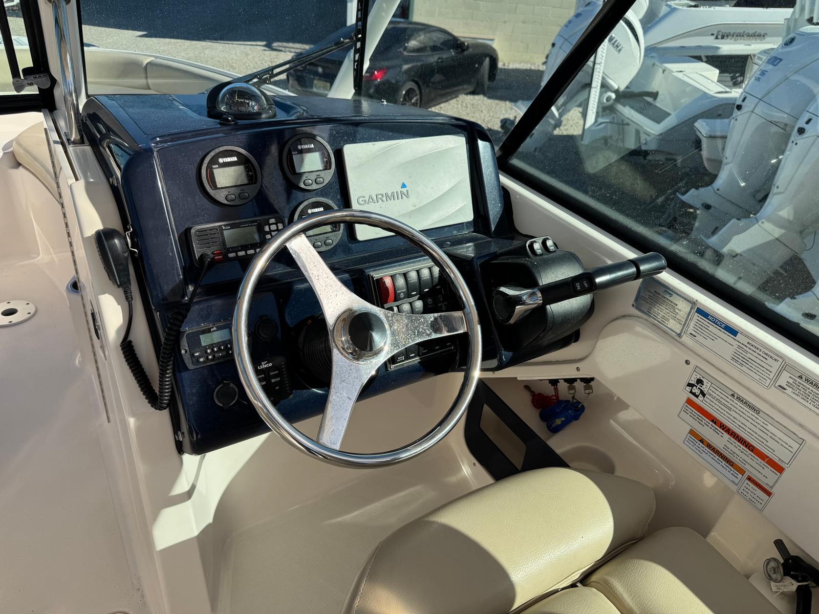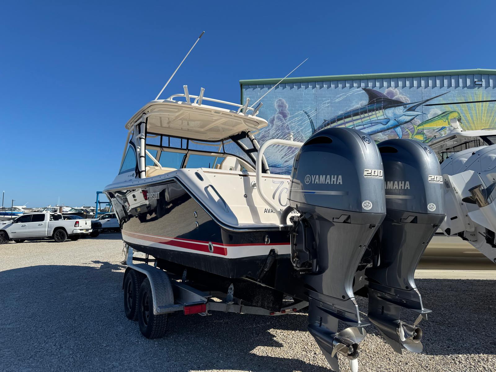 Powering the Pursuit DC 265 are two dependable engines, delivering a combined 400 horsepower for exhilarating performance and smooth handling. With dual engines, this Dual Console boat for sale offers enhanced maneuverability and stability, making it ideal for navigating coastal waters, lakes, and rivers. The engines have only 207 hours of use, ensuring plenty of life and reliability for future adventures. Whether you’re accelerating to your favorite fishing spot or cruising along the shoreline, the DC 265 provides responsive power and efficiency, allowing you to enjoy every moment on the water.