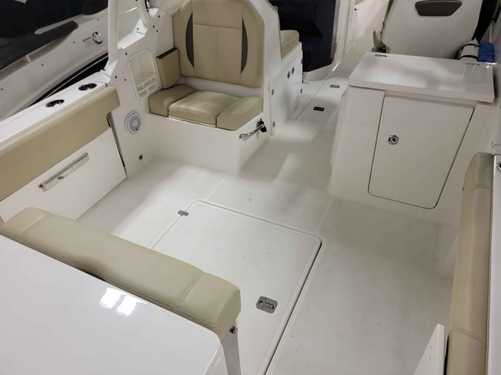 The Pursuit 266 DC is as practical as it is fun. The dual console layout makes it easy to move around the boat, access storage areas, and dock with confidence. The generous storage options allow you to bring along fishing gear, water toys, and picnic supplies without sacrificing comfort or space. The boat’s manageable size and responsive handling make it a breeze to dock, trailer, and maintain, giving you more time to enjoy the water and less time worrying about logistics.Fuel efficiency is another advantage of the Pursuit 266 DC. The twin-engine setup is designed to deliver impressive performance without excessive fuel consumption, making it a smart choice for boaters who want to maximize their time on the water without breaking the bank. Whether you’re planning short day trips or longer excursions, this dual console boat for sale offers the range and reliability you need.