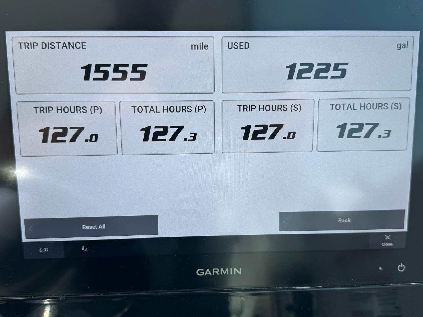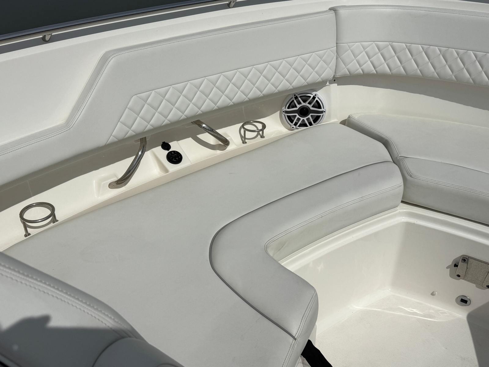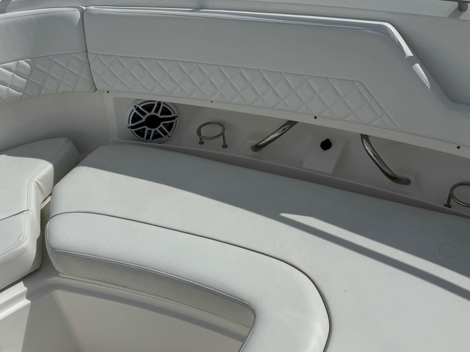 Powered by twin engines delivering a combined 600 horsepower, the Pursuit DC 326 offers exhilarating performance and smooth handling. The dual engines provide impressive acceleration, responsive control, and the confidence to tackle a variety of water conditions. With only 128 engine hours, these engines are primed for many more seasons of enjoyment. Whether you are cruising along the coastline, heading to your favorite fishing spot, or enjoying water sports, this dual console boat for sale delivers the power and reliability you need for every journey.