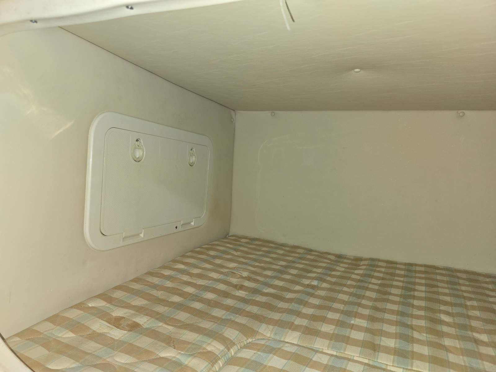 There is quite a bit of canvas with the boat; navy windshield cover, helm seat covers, dash cover, door cover, rear cockpit shade cover with poles. There is also a second anchor and rode in the front rope locker.