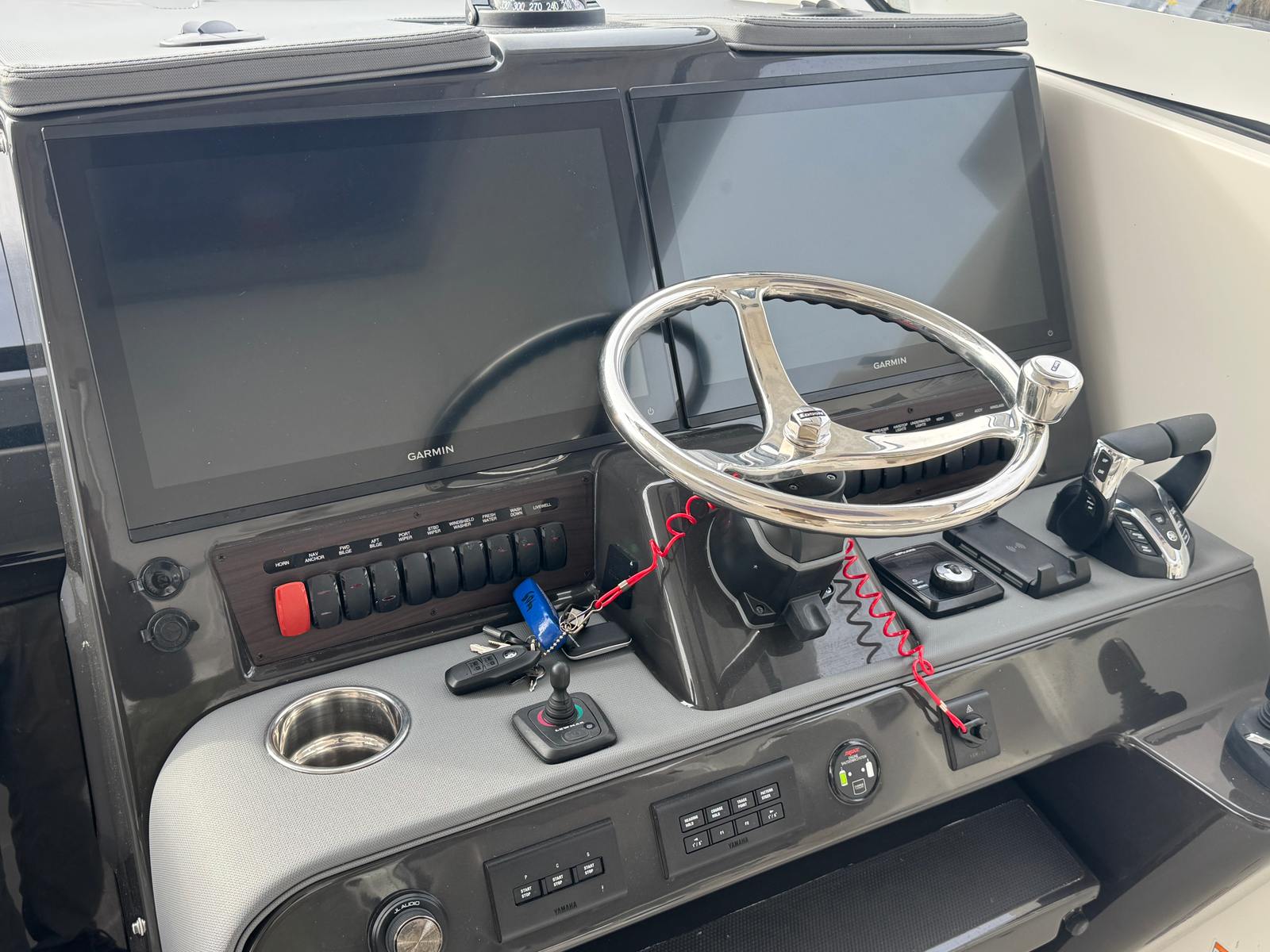Equipped with three powerful engines, the Pursuit 405 OS boasts a combined 1350 horsepower, ensuring a thrilling ride and responsive handling. With only 1 engine hour, these motors are virtually new, promising years of reliable performance and efficiency. The triple-engine setup provides impressive acceleration, smooth cruising, and the ability to tackle a variety of water conditions with confidence. Whether you’re navigating coastal waters or exploring inland lakes, this cruiser boat for sale offers the perfect balance of speed and stability.