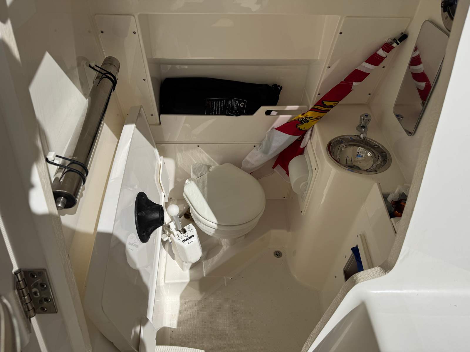 - Electric Marine Head (Freshwater) with 6 Gallon Holding Tank, Macerator Discharge Pump, 316L Stainless Steel Deck Pump-out Fitting and Bronze Thru Hull Fitting with Seacock